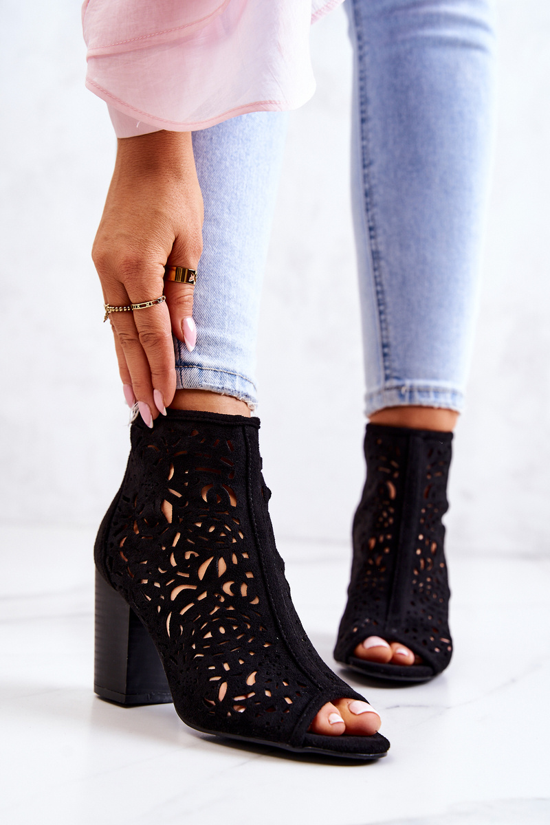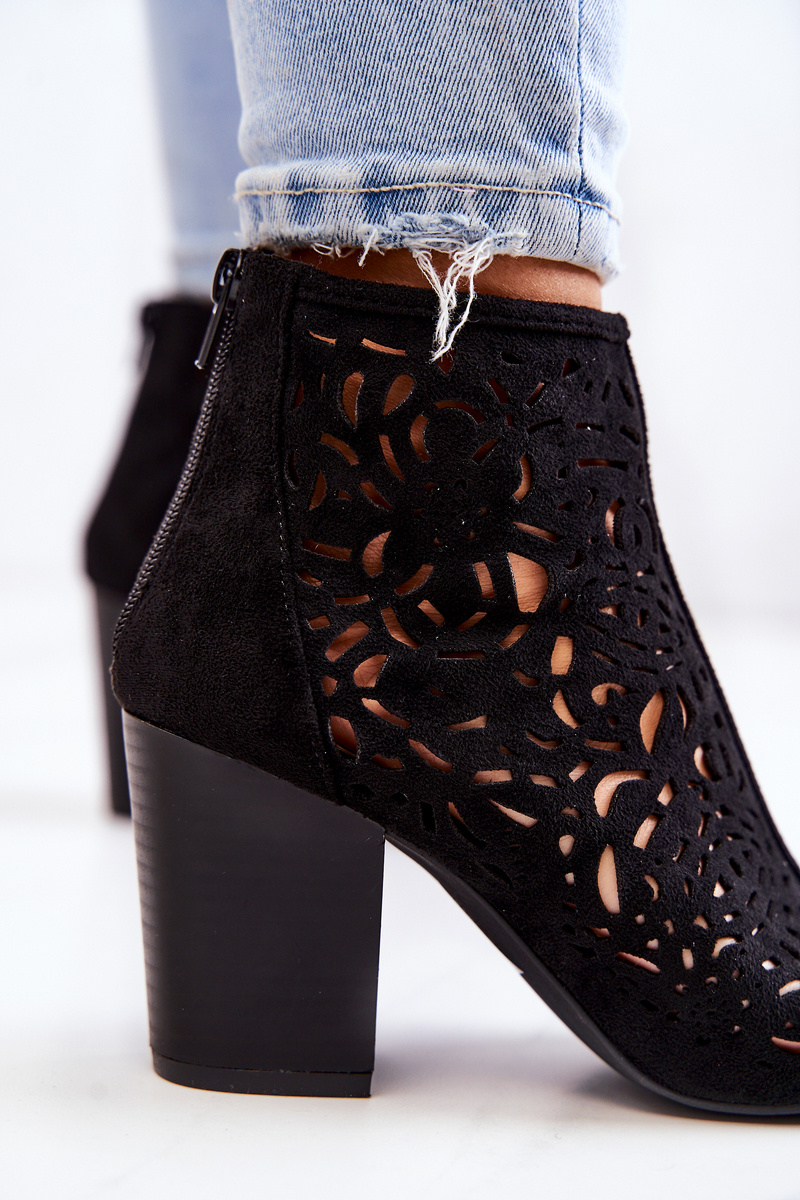 Botki to nieodłączny element kobiecych stylizacji. Wykonane z zamszowej eko skóry. Klasyczne botki z wyciętymi palcami są zapinane na suwak z tyłu cholewki. Obcas w postaci słupka optycznie wysmukli nogę. Ażurowy wzorek sprawi, że buty będą cudownie prezentować się na nodze! Koniecznie sprawdź także pozostałą naszą kolekcję botków! Przy wyborze rozmiaru prosimy sugerować się tabelą rozmiarów.
