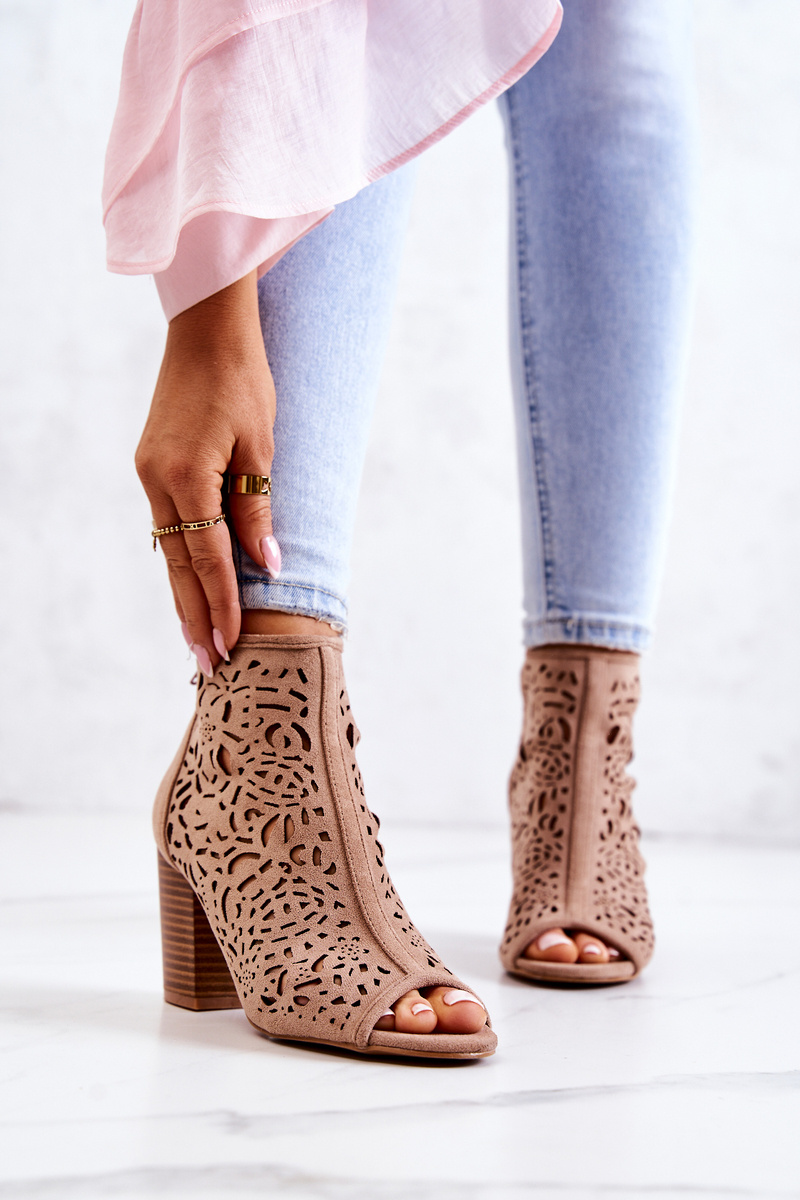 Botki Na Słupku Ażurowe Beżowe Brittany