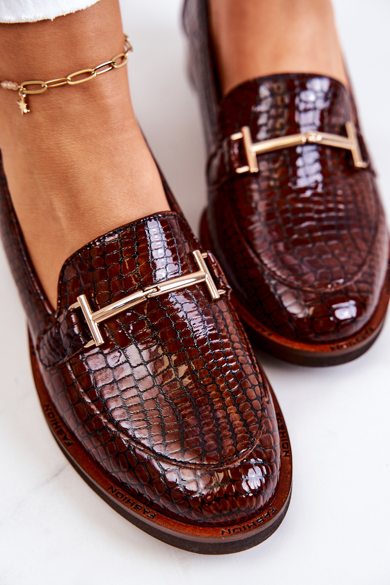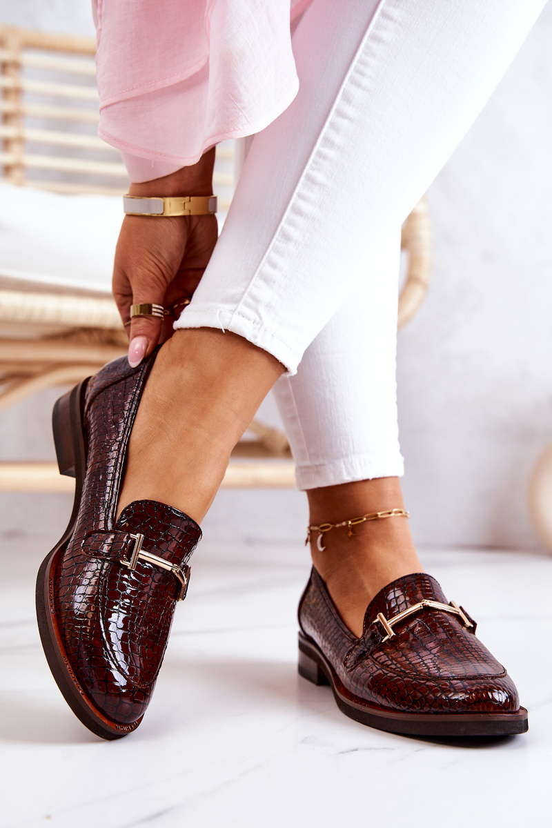 Damskie Półbuty Wężowe Laura Messi 2307 Brązowe