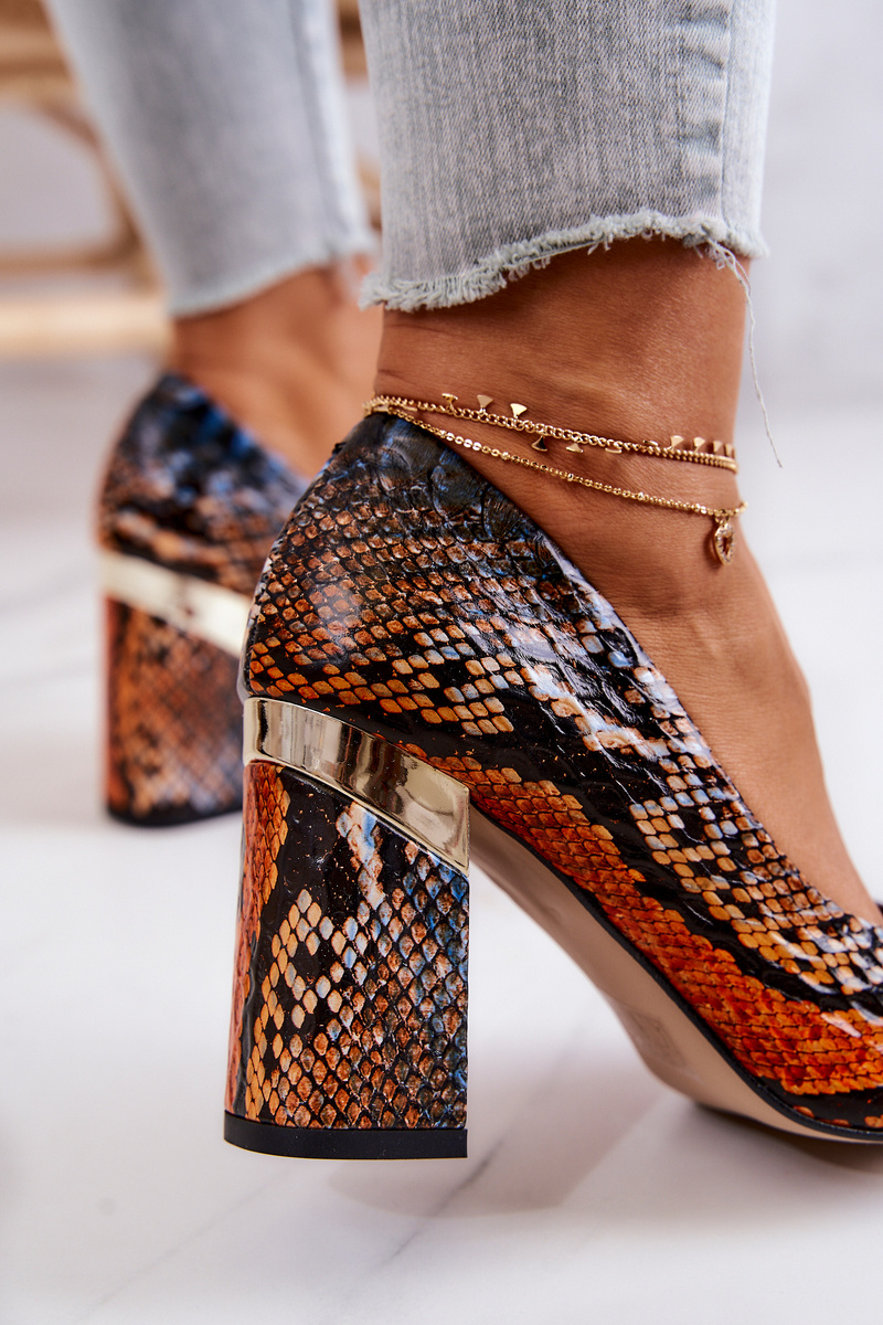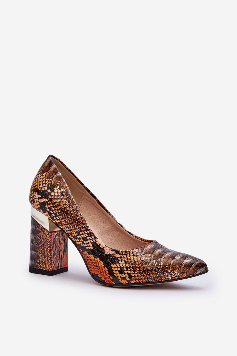 Skórzane Czółenka Lewski Wężowe 3117 Pomarańczowo-Brązowe