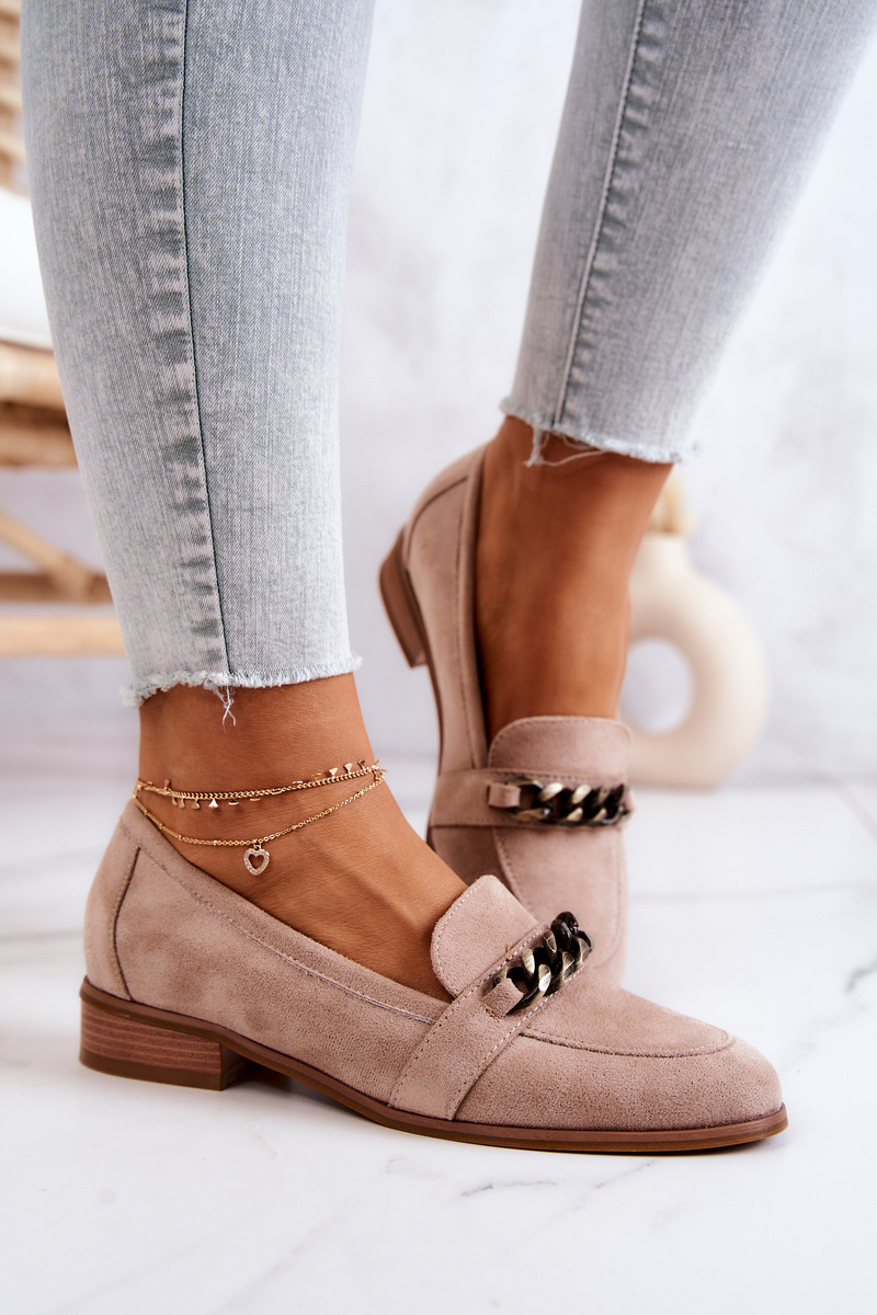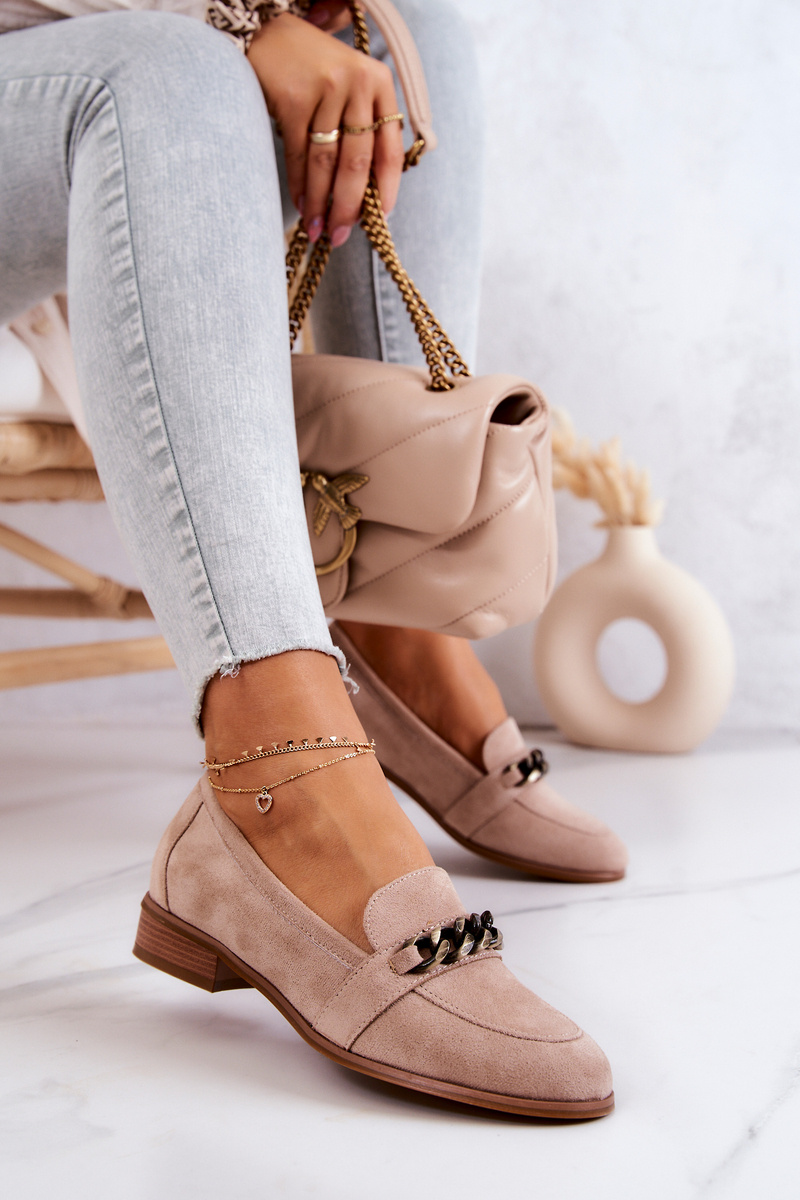 Zamszowe Półbuty Mokasyny Beżowe Yasmin