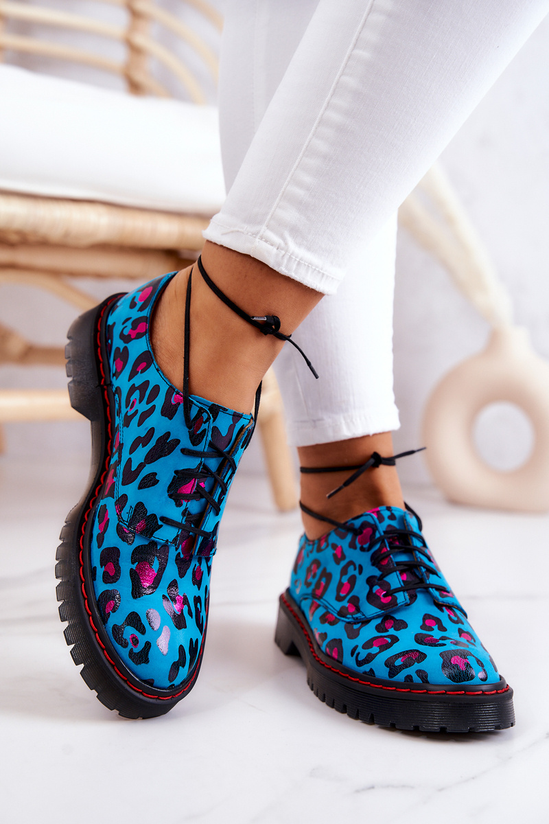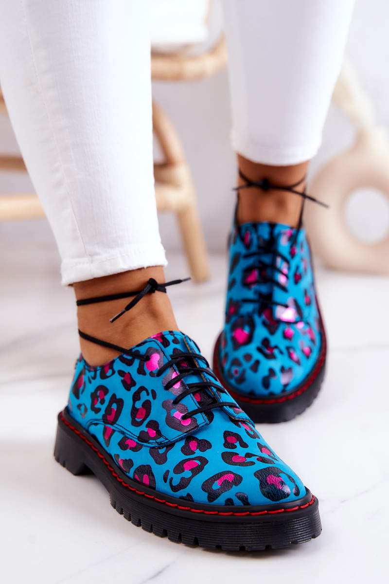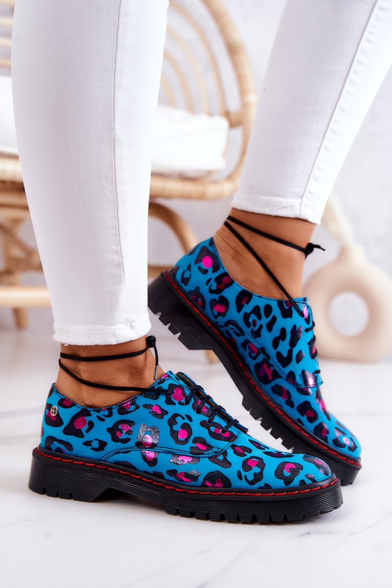 Damskie Skórzane Półbuty Oxfordy Maciejka 04087-47 Niebieskie