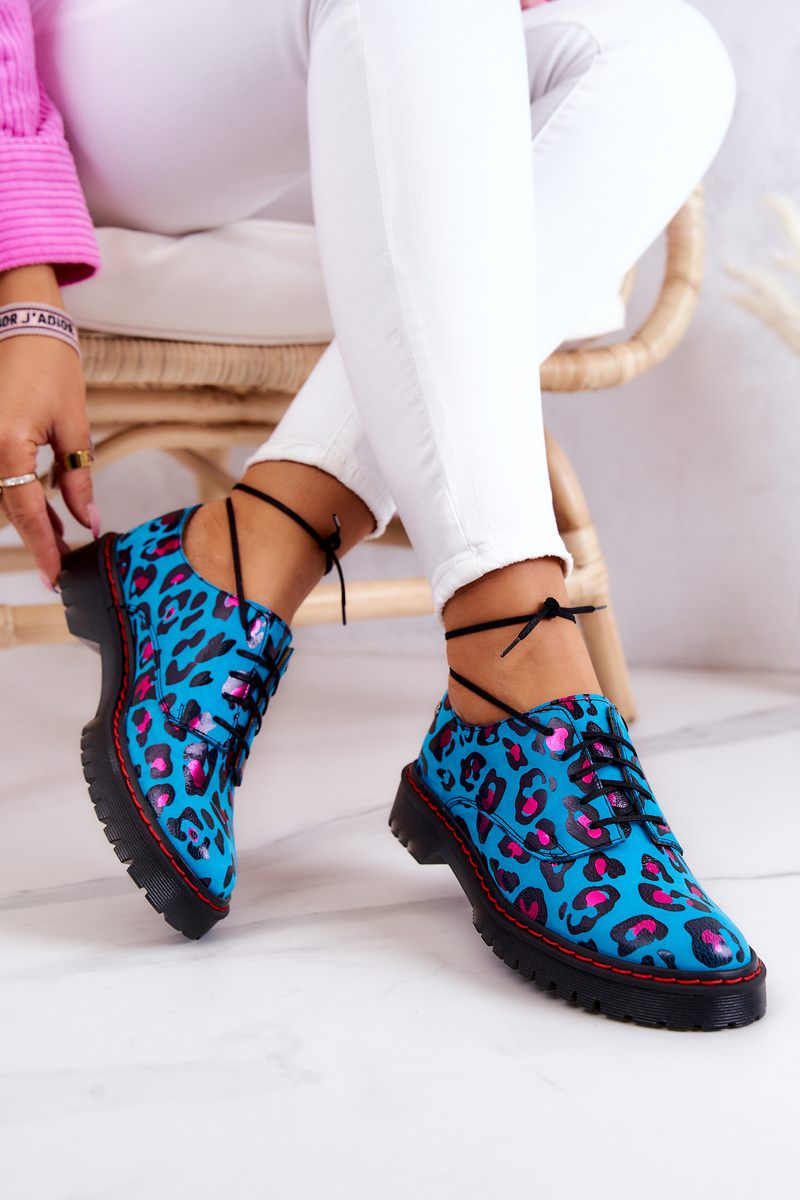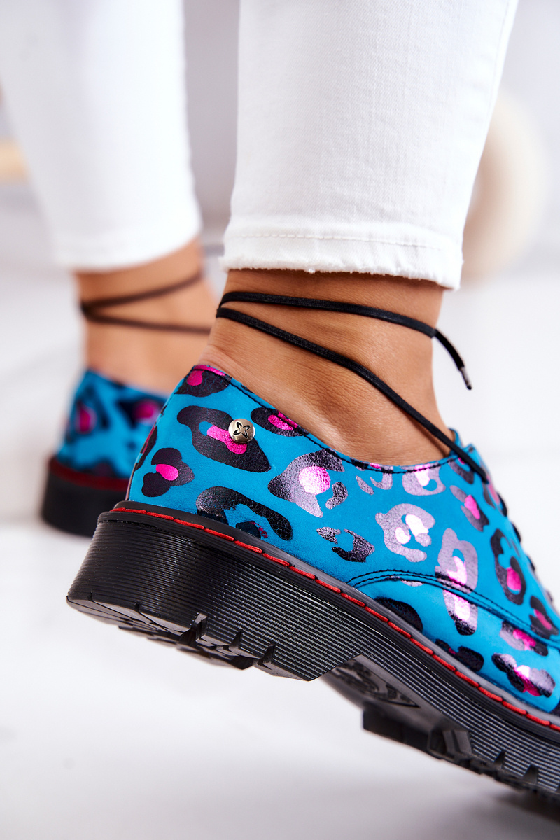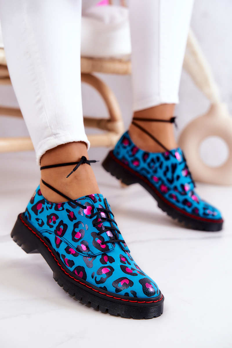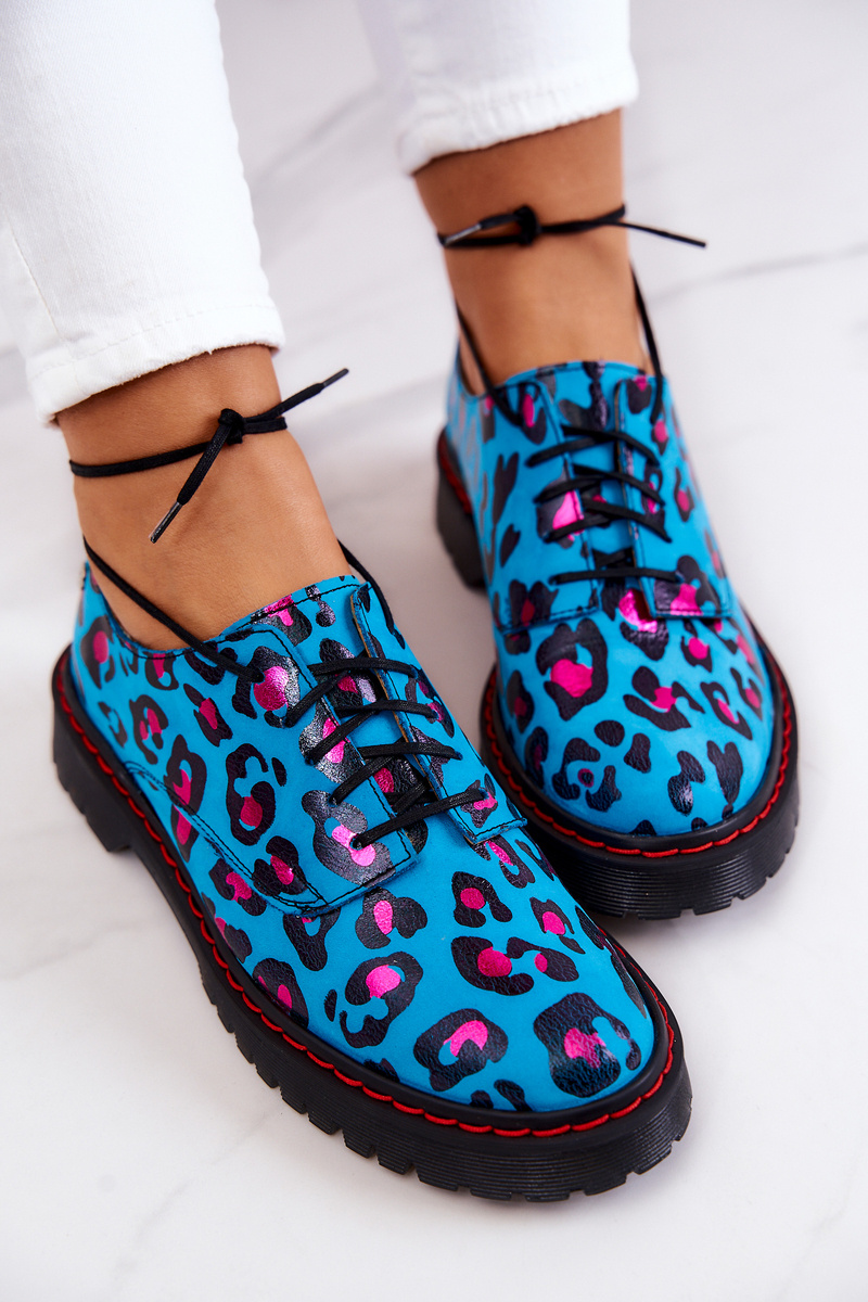 Damskie Skórzane Półbuty Oxfordy Maciejka 04087-47 Niebieskie