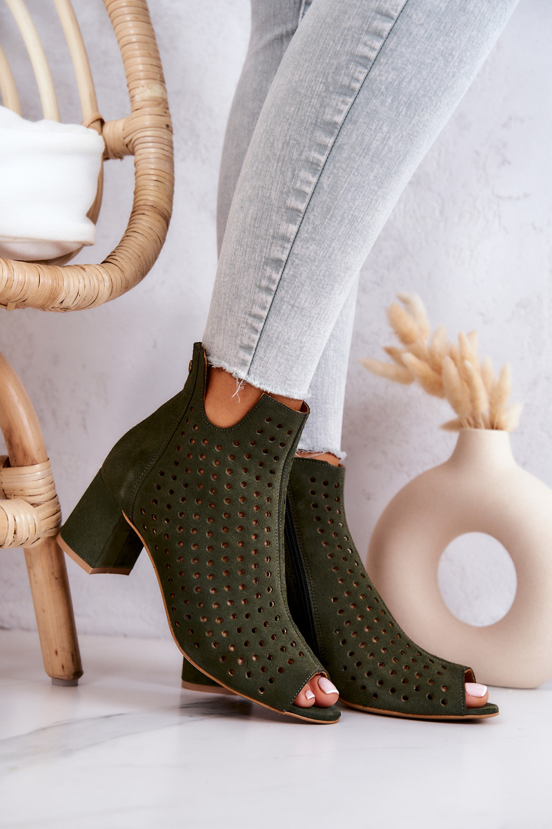 Zamszowe Ażurowe Botki Maciejka 05420-09 Zielone