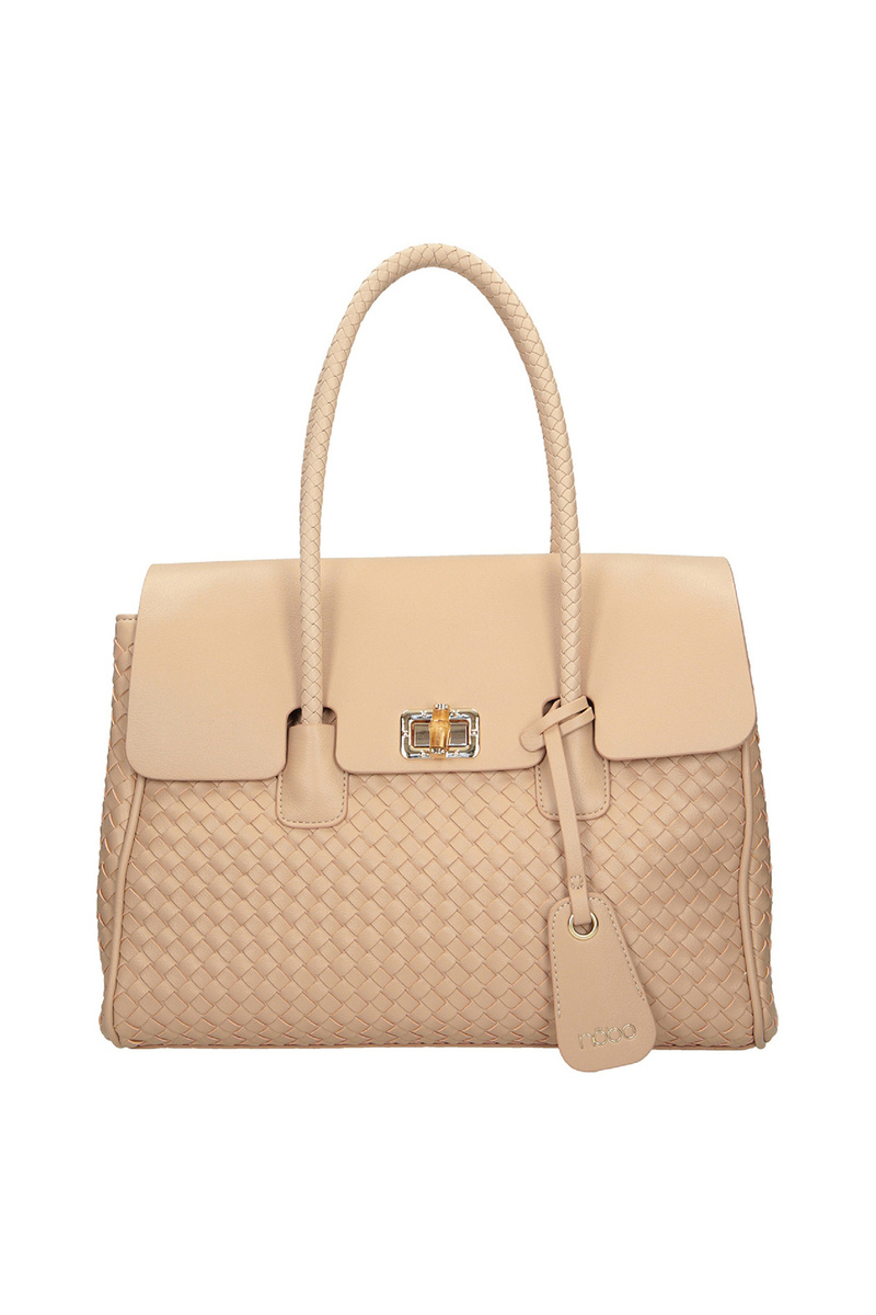 Duża torebka na ramię ze stylową plecionką na przodzie i na rączkach. Wykonana z eko skóry. Zamykana na klapkę z elegancką, bambusową wstawką. Torebka posiada długie uchwyty. Dodatkowo do torebki dołączony jest regulowany, odpinany pasek. Wnętrze torby jest podzielone na dwie otwarte komory, w których znajdują się dodatkowe kieszonki oraz na jedną zamykaną na suwak. Torebka jest bardzo pojemna, mieści format A4. Model ten jest stylowy, a zarazem praktyczny. Pasuje do wielu stylizacji.
