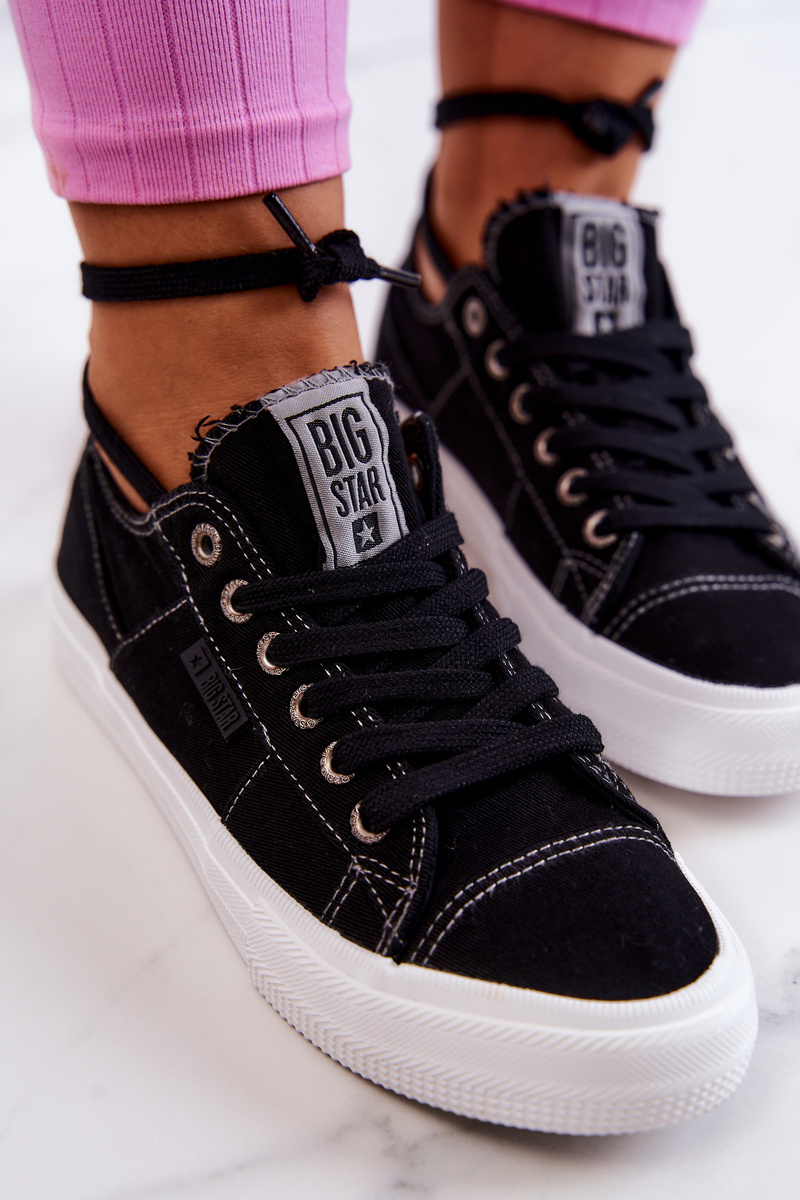 Tenisówki polskiej marki BIG STAR wykonane zostały z tkaniny. Posiadają miękką, materiałową wkładkę oraz antypoślizgową podeszwę. Klasyczny, wiązany model. Wygodne, a zarazem modne. Takie właśnie są te tenisówki! Masywna platforma świetnie izoluje od podłoża. Powinnaś mieć je w swojej szafie! Przy wyborze rozmiaru prosimy sugerować się tabelą rozmiarów.