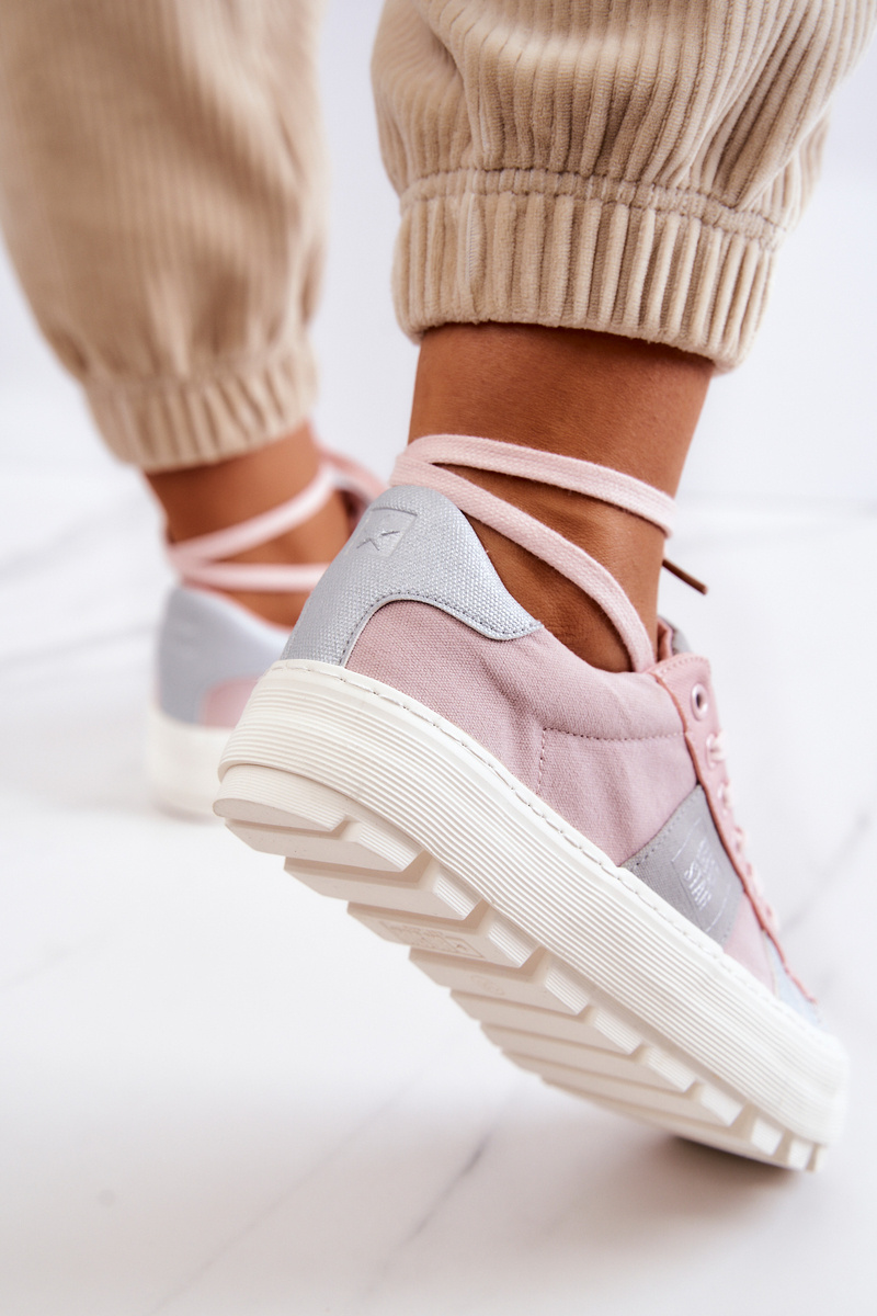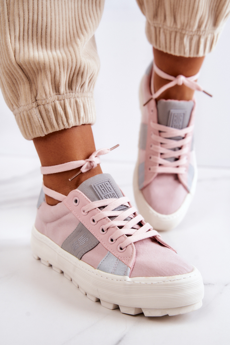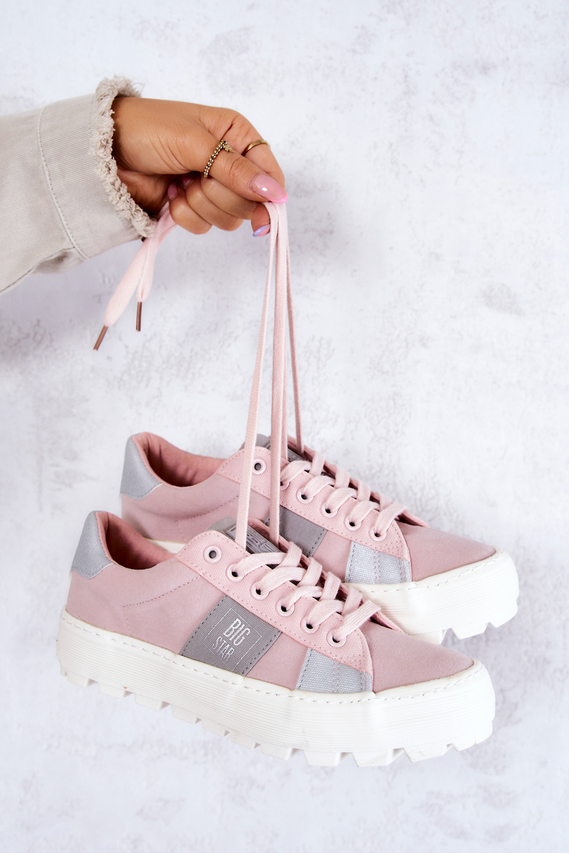 Piękny model tenisówek od marki Big Star! Wykonane z tkaniny, ozdobnie przyszyte kawałki materiałów w innym kolorze. Posiadają masywną, antypoślizgową platformę, która delikatnie uniesie Twoją sylwetkę, a jednocześnie zapewni stabilność na nierównym podłożu. Tenisówki klasycznie wiązane. Świetny model do wielu stylizacji! Przy wyborze rozmiaru prosimy sugerować się tabelą rozmiarów.