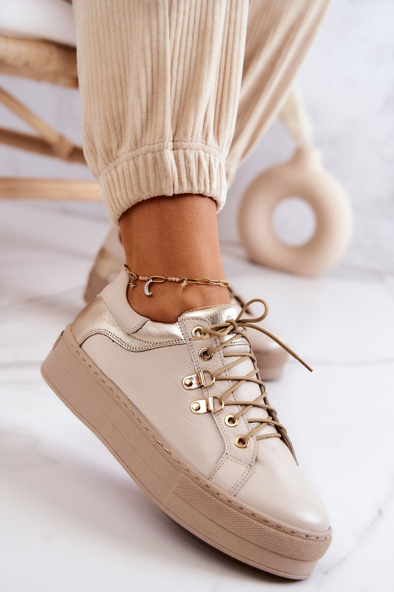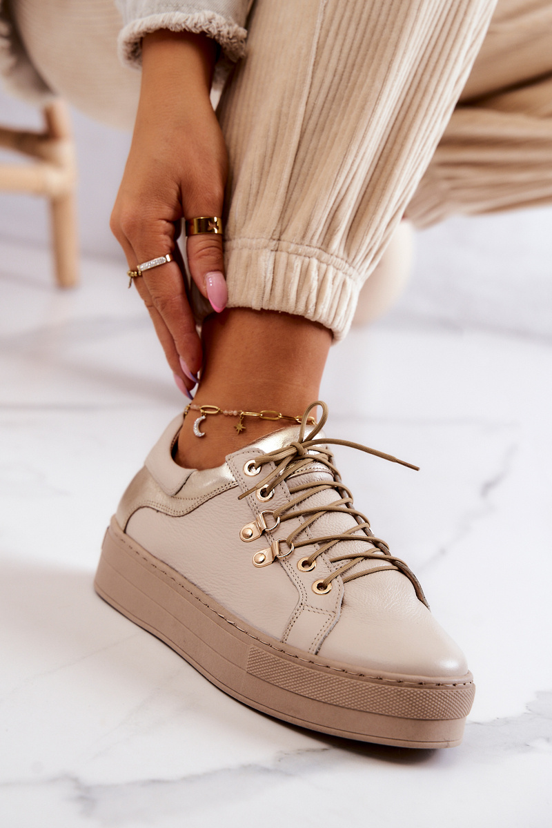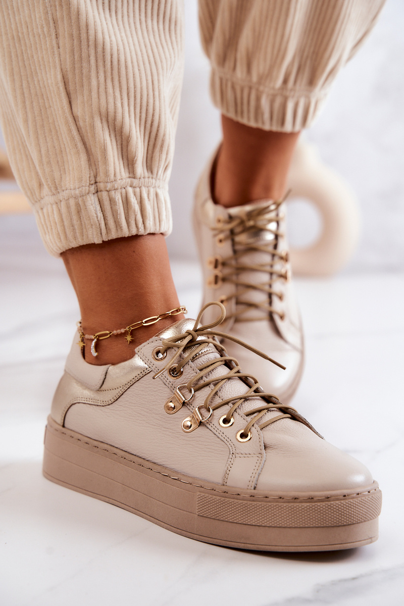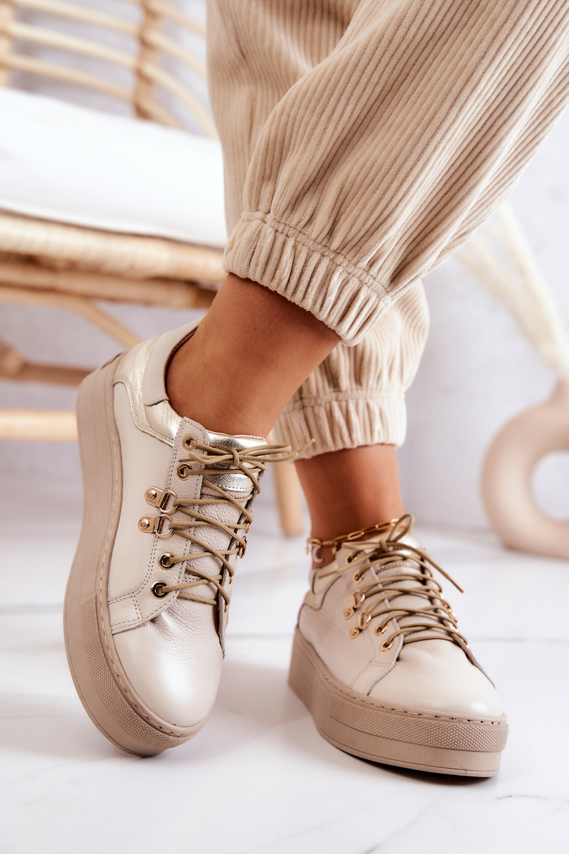 Skórzane Buty Sportowe Na Platformie Jasnobeżowe Mary Ann