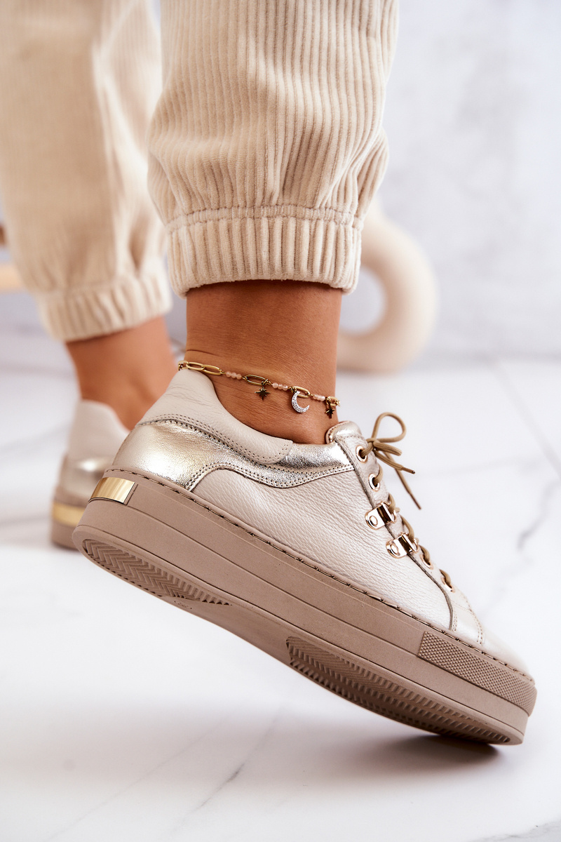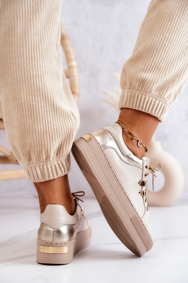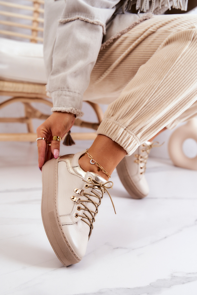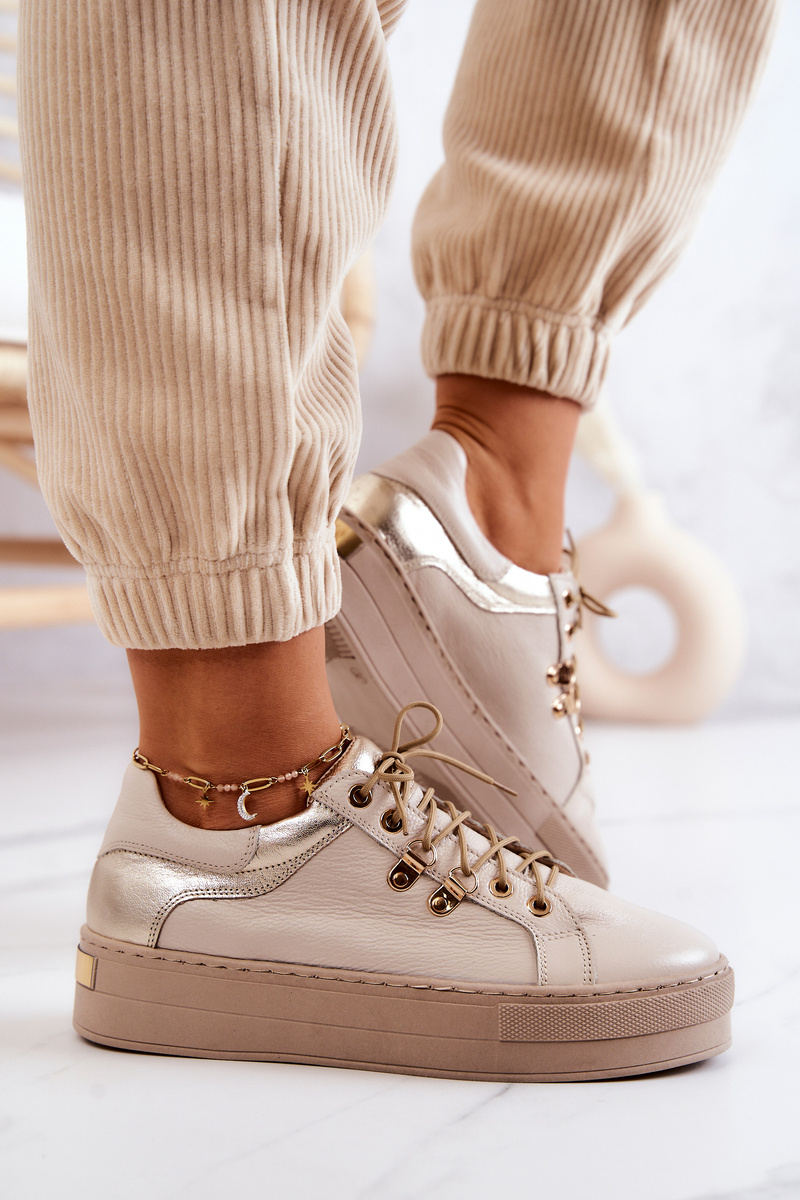 Skórzane Buty Sportowe Na Platformie Jasnobeżowe Mary Ann