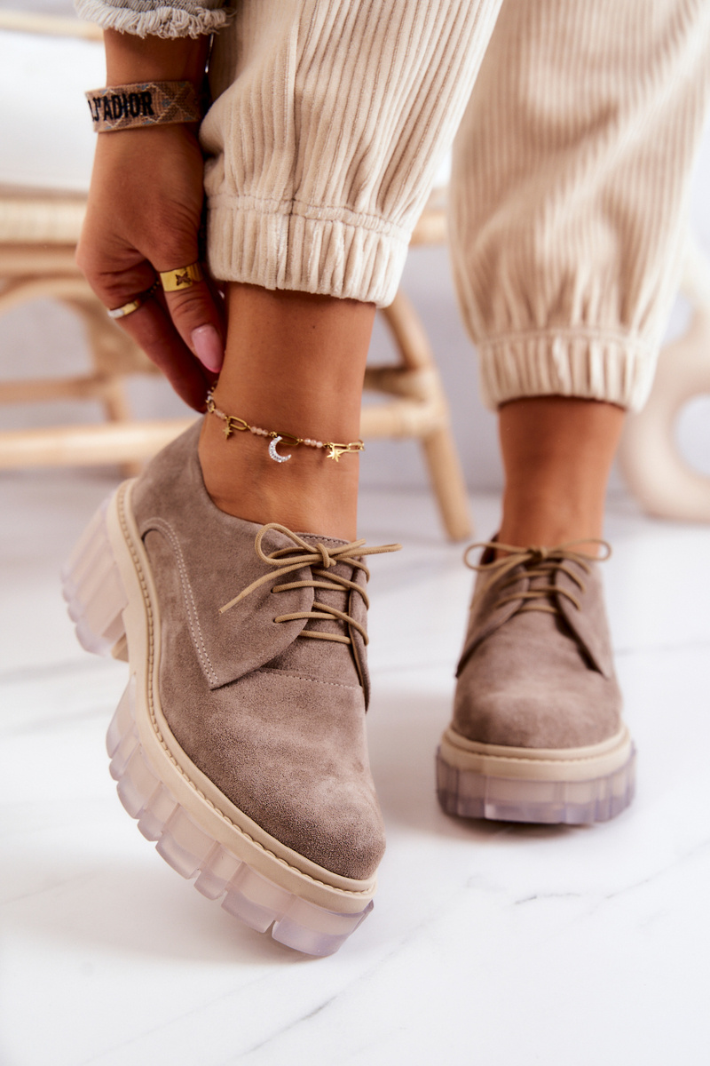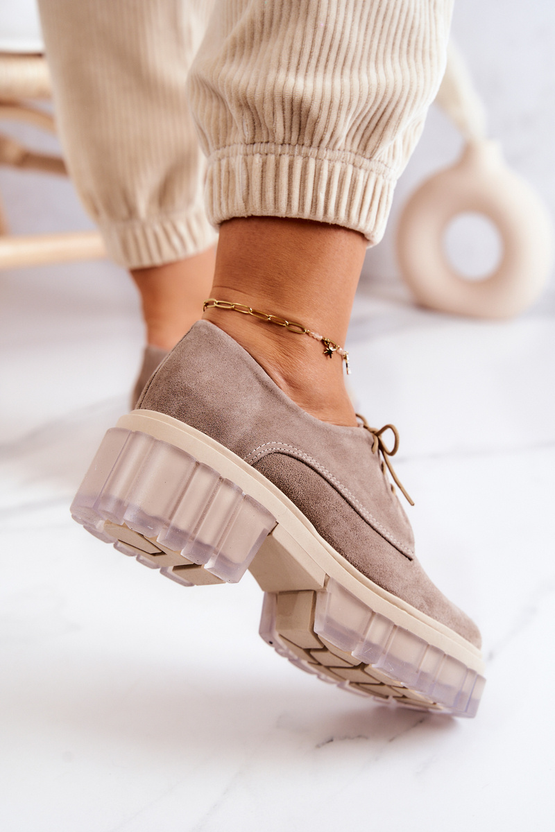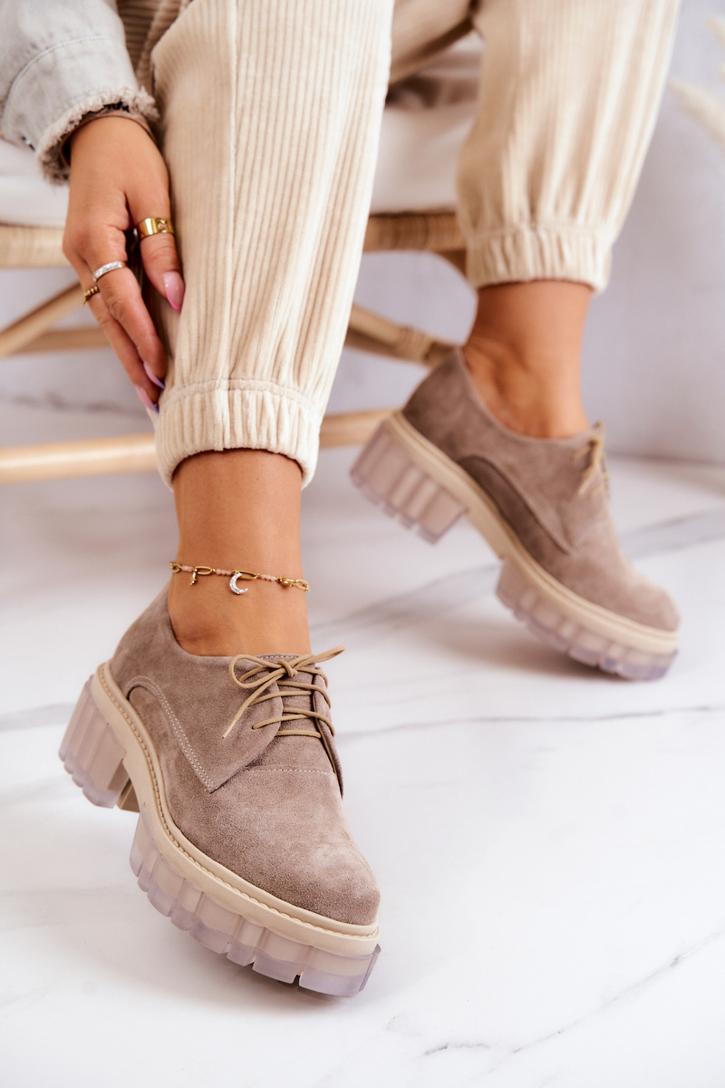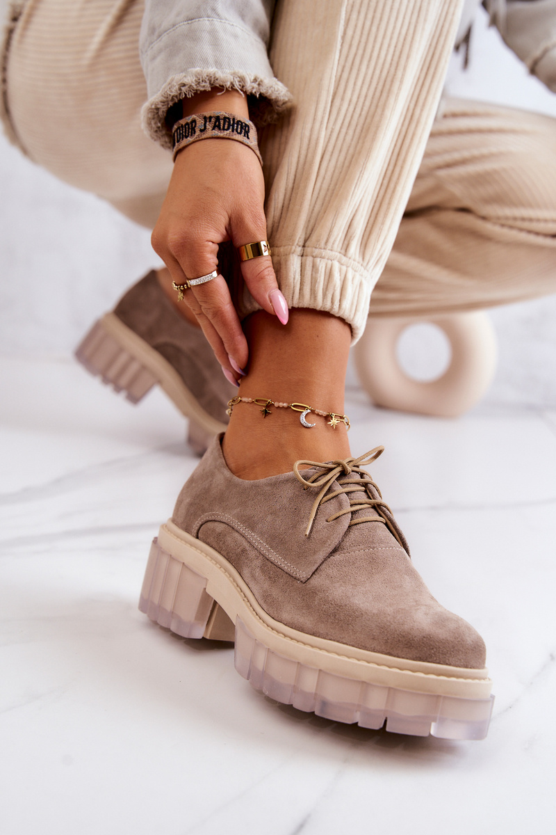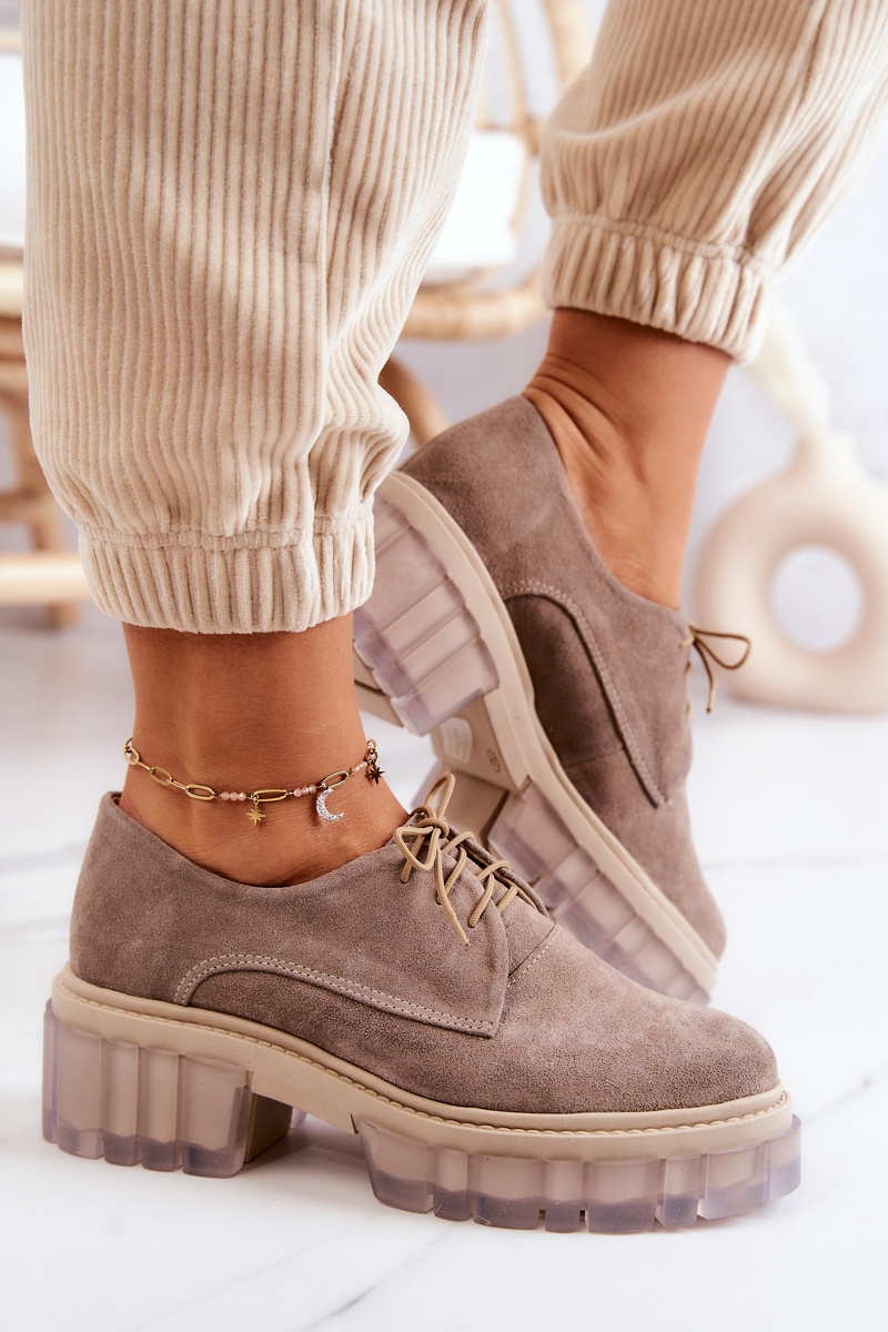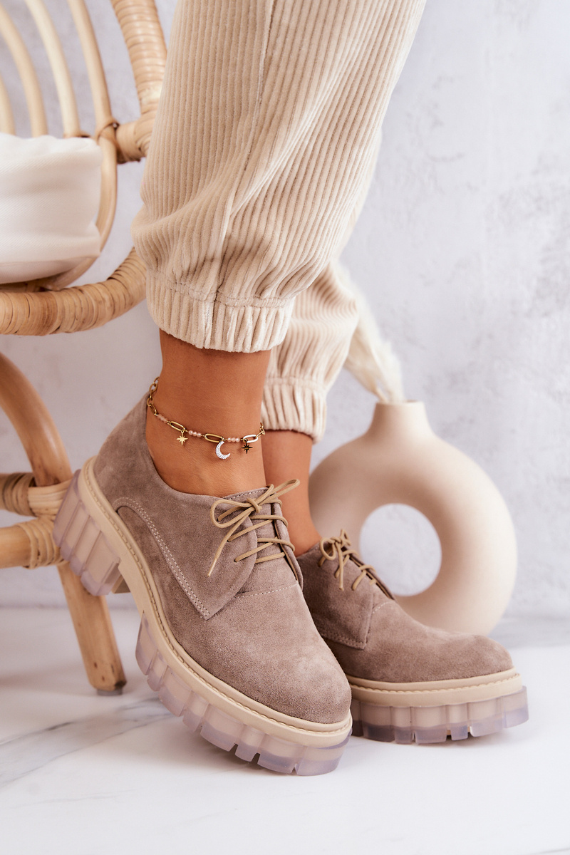 Modne Zamszowe Półbuty Loafery Beżowe Lauriss