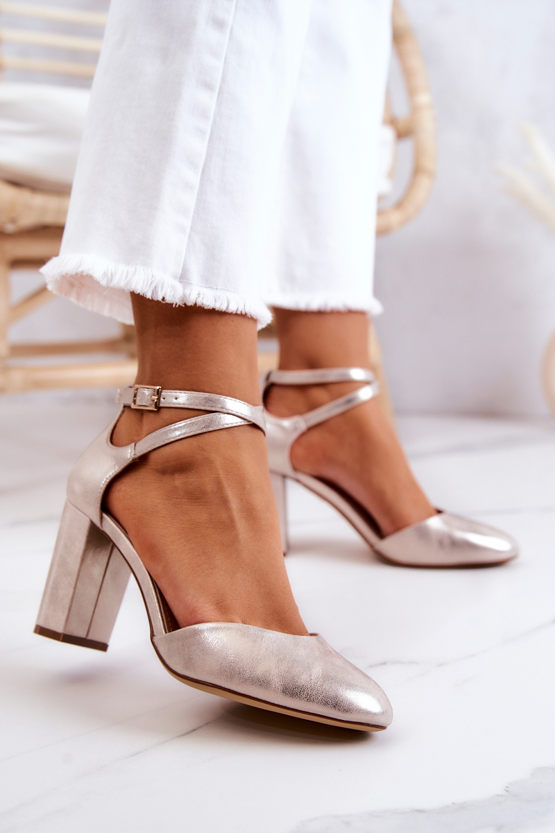 Czółenka Skórzane Na Słupku Sergio Leone SK851 Złote