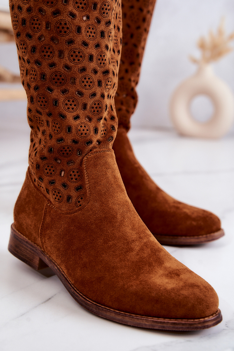 Zamszowe Kozaki Z Ażurowym Wzorem Camel Darnell