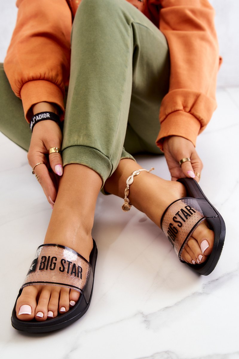 Wyjątkowa jakość wykonania - właśnie to wyróżnia obuwie marki Big Star! Wykonane z lekkiego, wysokogatunkowego tworzywa oraz gumy. Modne, wygodne, a zarazem kobiece. Przezroczyste elementy w cholewce nadają im charakterystycznego wyglądu. Te klapki zostały wyposażone w wyściółkę, która zapewni wysoki komfort dla Twoich stóp w ciągu całego dnia. Ciesz się wygodą na co dzień! Przy wyborze rozmiaru prosimy sugerować się tabelą rozmiarów.