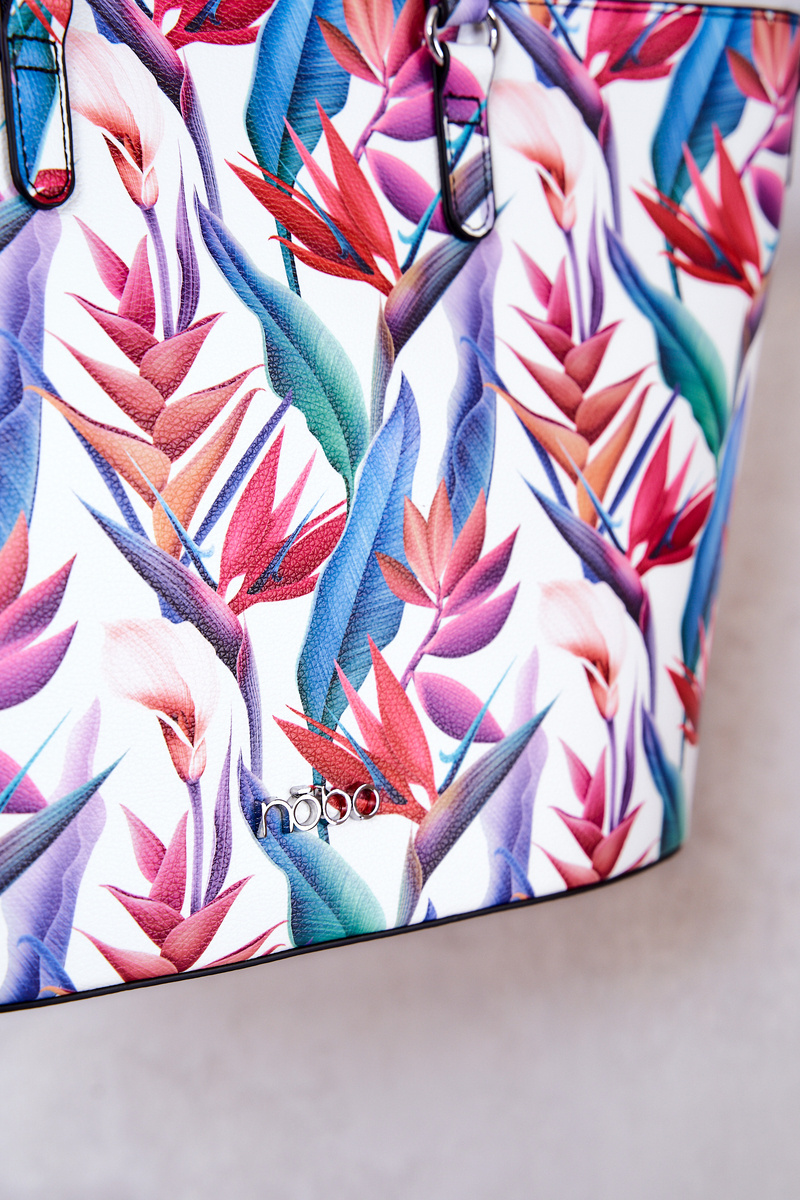 Piękna, duża torebka Nobo z modnym designem w kwiatowy wzór. Torebka świetnie sprawdzi się podczas wiosenno-letnich stylizacji. Wykonana z wysokogatunkowej eko skóry. Komora zamykana na suwak. Dodatkowo posiada odpinany, regulowany pasek. W środku znajdują się dwie otwarte kieszonki oraz jedna zamykana na suwak. Ten model to hit tego sezonu!