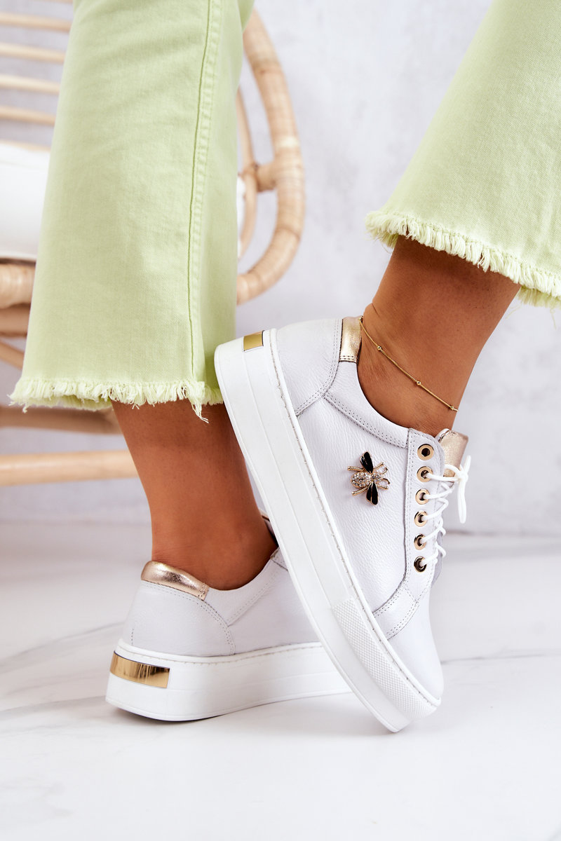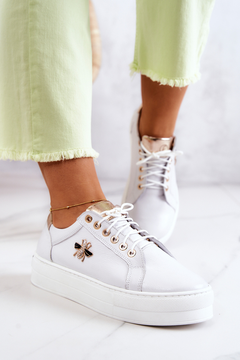 Skórzane Buty Sportowe Na Platformie Białe Bellisia