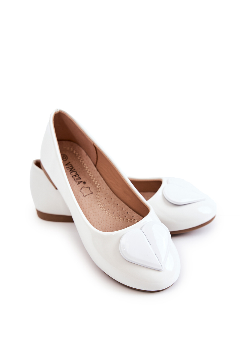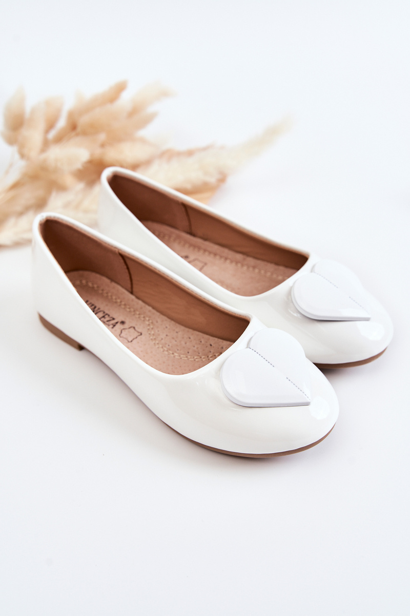Lakierowane Dziecięce Balerinki Z Sercem Białe Corty
