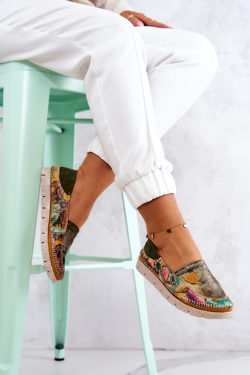 Damskie Skórzane Mokasyny Maciejka 05434-09 Zielone