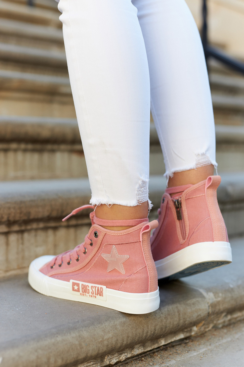 Marka Big Star słynie ze swych kultowych trampek w różnych fasonach i wariantach kolorystycznych. Te wysokie trampki są kolejną propozycją na nadchodzący wiosenno-letni sezon. Obuwie zostało wykonane z wysokiej jakości materiału tekstylnego. Miękka wkładka z materiału pozwoli na komfortowe użytkowanie butów. Trampki posiadają wiązanie oraz suwak na boku cholewki ułatwiający zakładanie obuwia. Odporna na ścieranie oraz antypoślizgowa podeszwa została wykonana z gumowego tworzywa. Gwiazda wraz z logo firmy zostały umieszczone po zewnętrznej stronie cholewki. Idealnie sprawdzą się podczas codziennego użytkowania!Przy wyborze rozmiaru prosimy sugerować się tabelą rozmiarów.