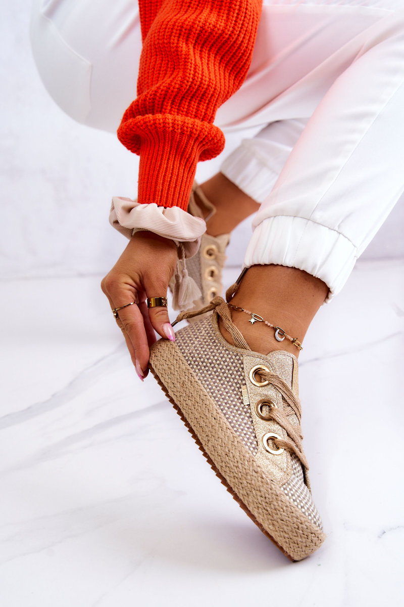 Tenisówki są wykonane z materiału tekstylnego i elementów z tworzywa sztucznego. Na nodze prezentują się niesamowicie! Cholewka wykonana z przeplatanej tkaniny. Nosek lekko zaokrąglony. Miękka wkładka została wykonana z wysokiej jakości tkaniny. Ozdobne sznurowadła oraz błyszczące wstawki z materiału sprawiają, że te buty wyglądają naprawdę wyjątkowo. Gumowa podeszwa z plecionką jest antypoślizgowa. Koniecznie powinnaś je mieć! Przy wyborze rozmiaru prosimy sugerować się tabelą rozmiarów.