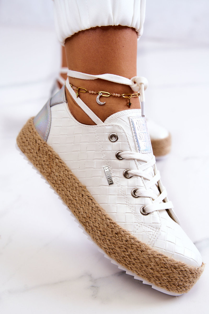 Wiązane Espadryle Na Plecionej Platformie Big Star JJ274397 Białe