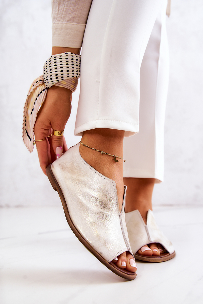 Skórzane Półbuty Na Suwak Nicole 2718/004 Biało-Złote
