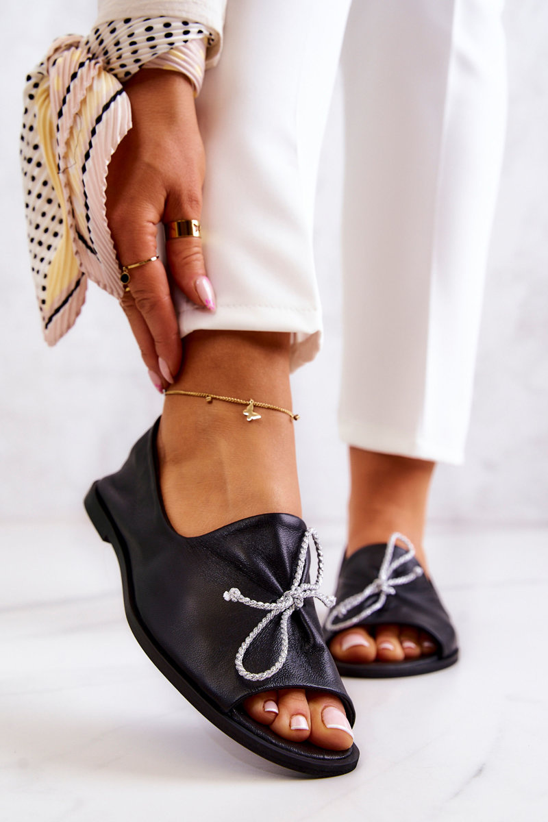 Zazoo 2660 Skórzane Baleriny Damskie Czarne