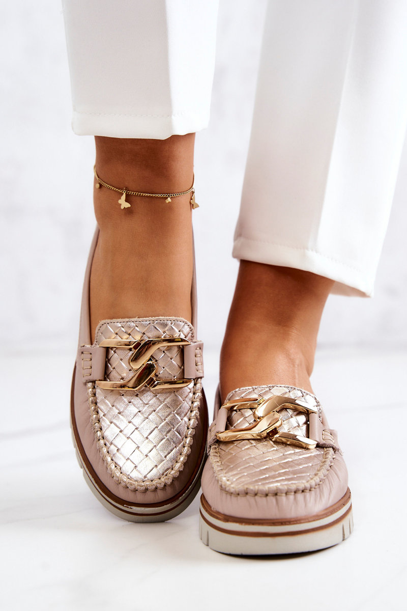 Damskie Skórzane Mokasyny Na Platformie Beżowe Venesia