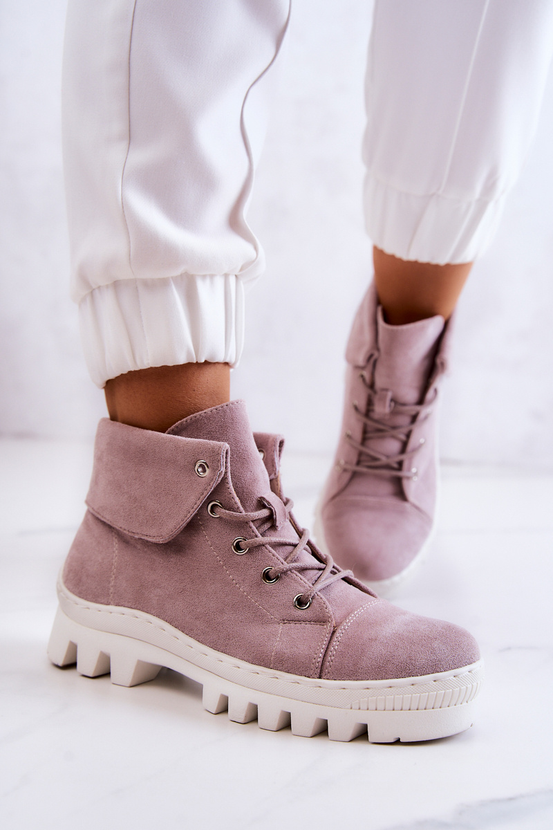 Te modne trapery wiosenne to idealne buty na wiosnę, wykonane z wysokiej jakości eko zamszu, które jest zarówno stylowe, jak i przyjazne dla środowiska. Dzięki okrągłym sznurówkom i grubej podeszwie z modnymi wycięciami, te buty zapewniają nie tylko wygodę, ale także świetny wygląd. Nosek butów jest usztywniony i zaokrąglony, a cholewka delikatnie wywinięta nad kostkę, co nadaje im wyjątkowy charakter.