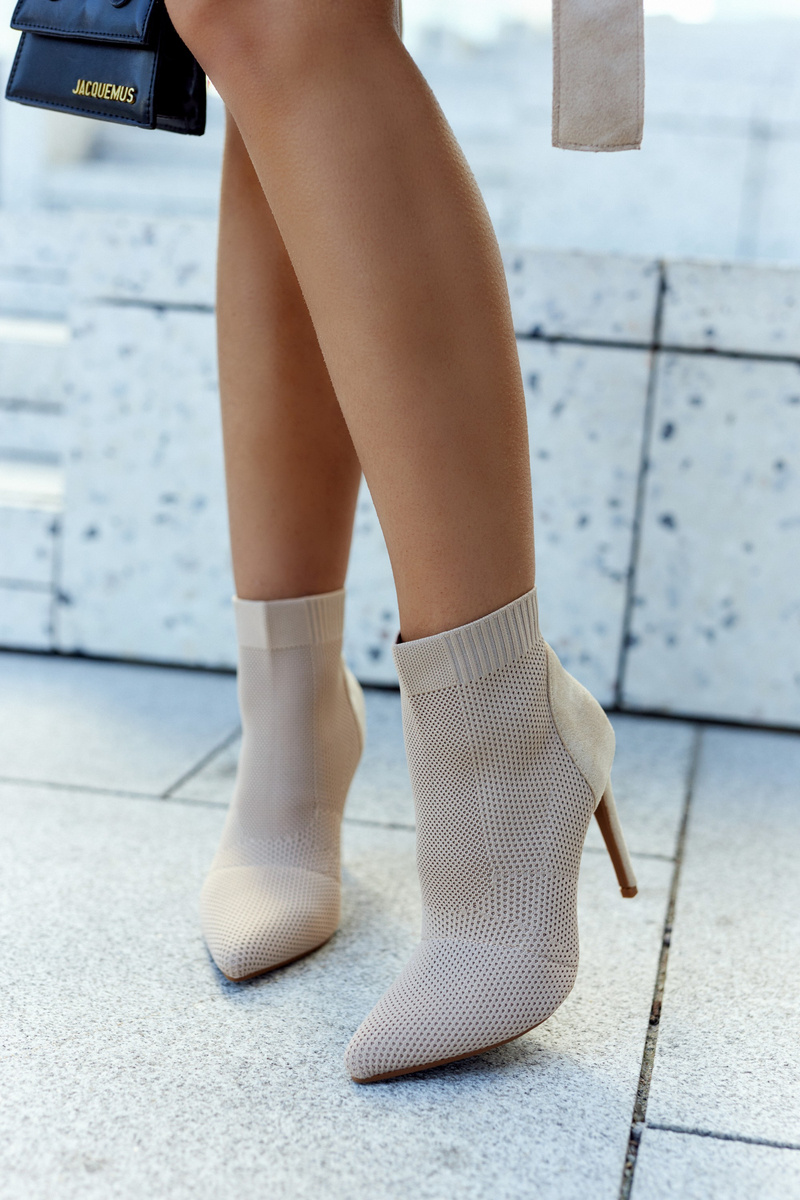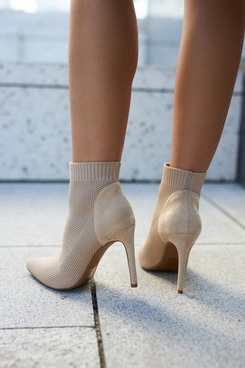 Damskie Botki Ze Skarpetą Na Szpilce Beżowe Last Night