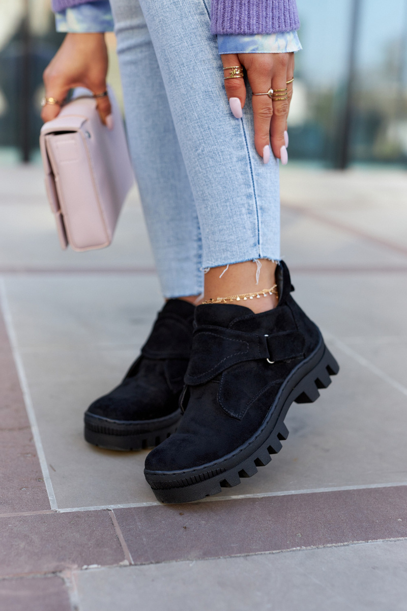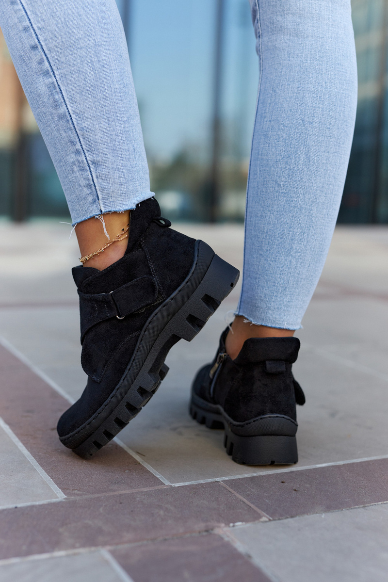 Zamszowe Wiosenne Botki Trapery Na Suwak Czarne Remgate