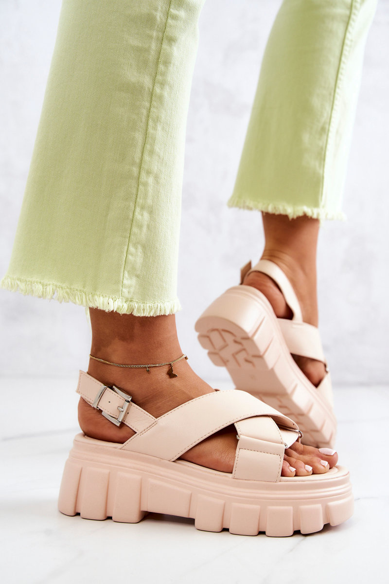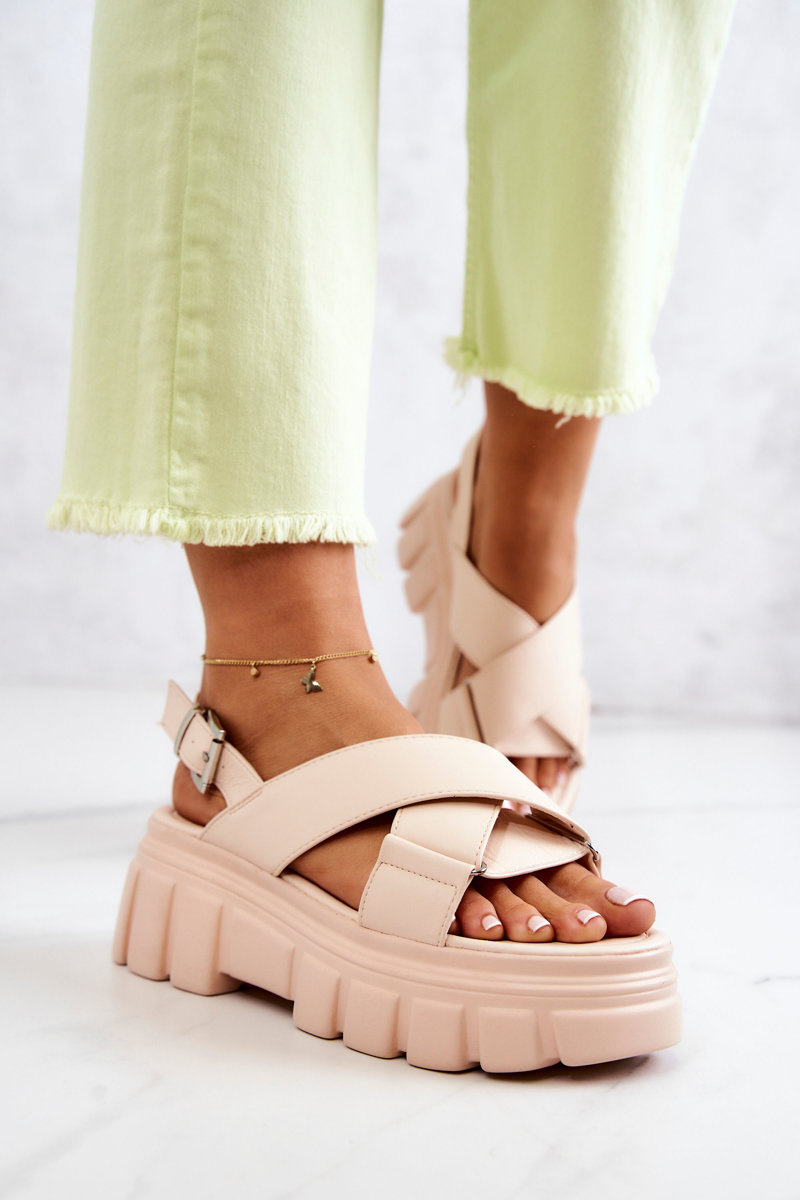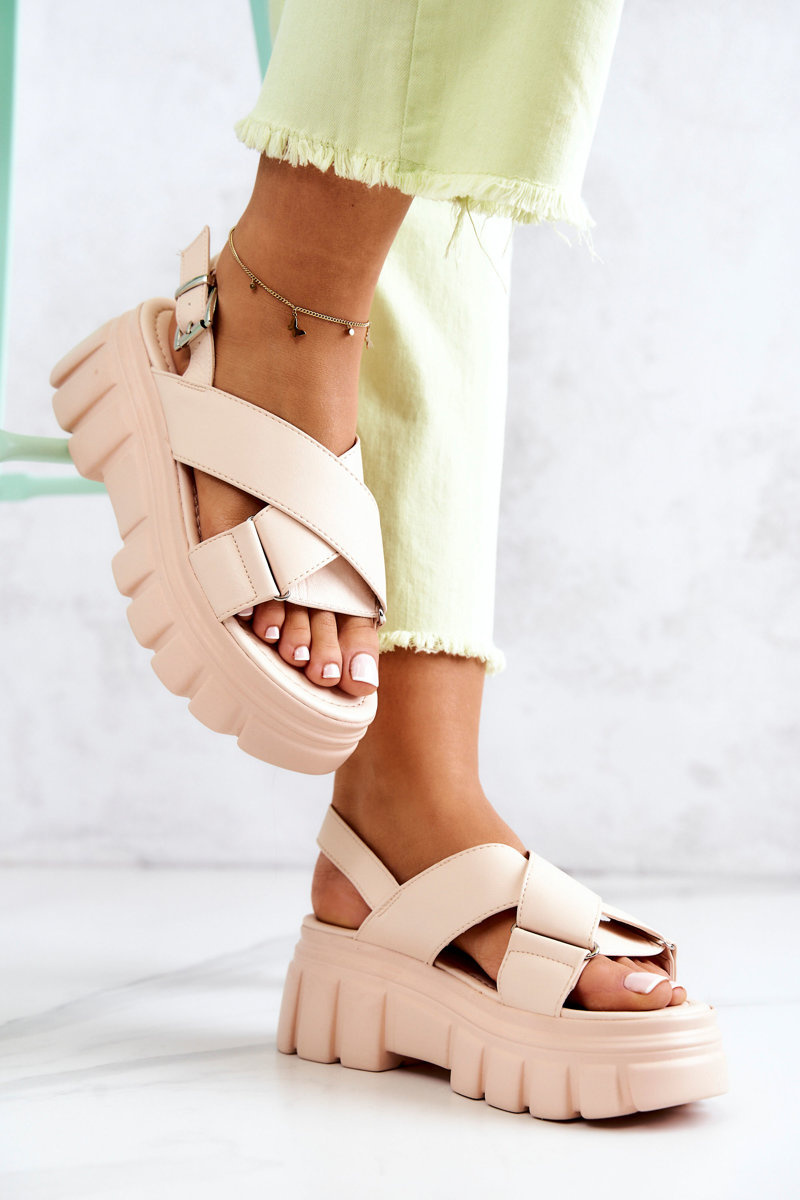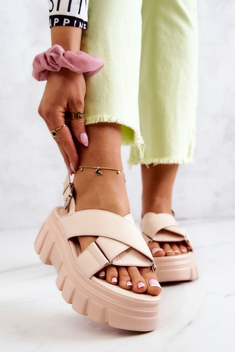 Skórzane Sandałki Na Platformie Jasnobeżowe Betti