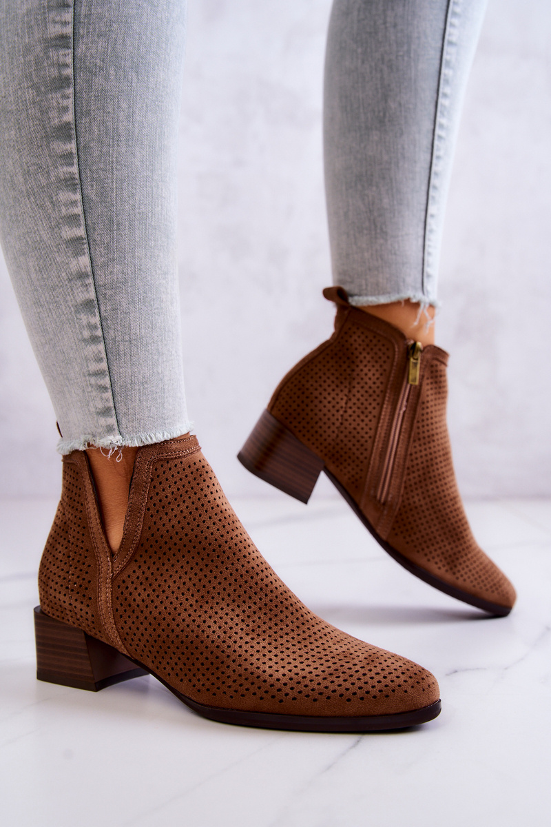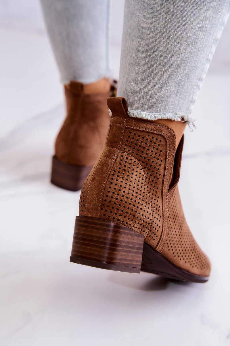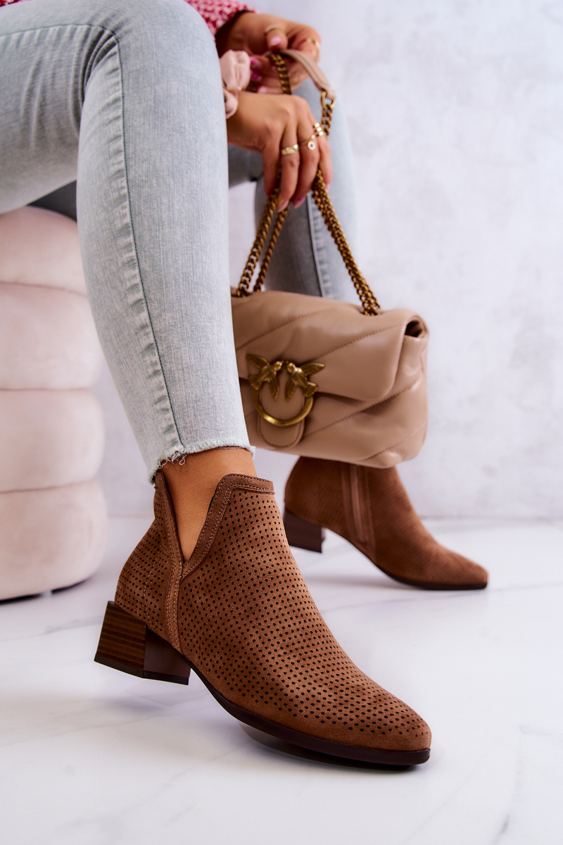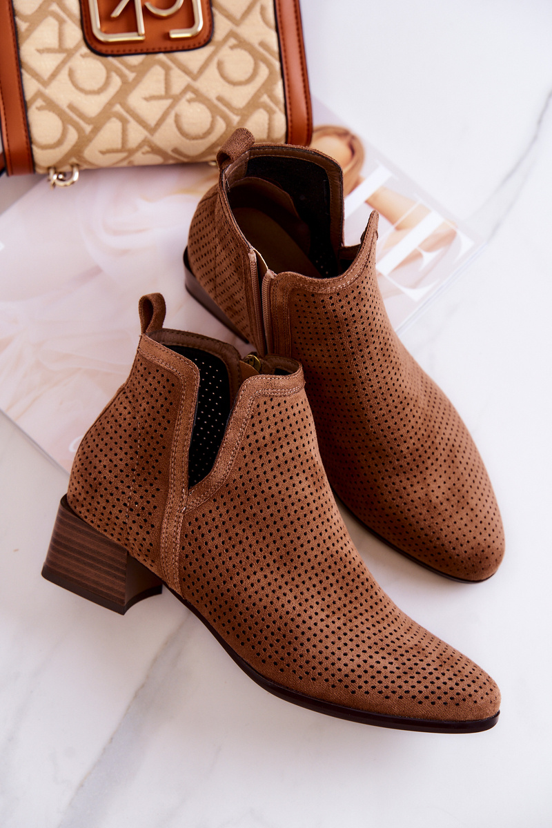 Zamszowe Botki Ażurowe Z Wycięciem Brązowe Carine
