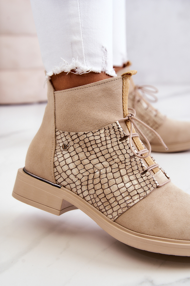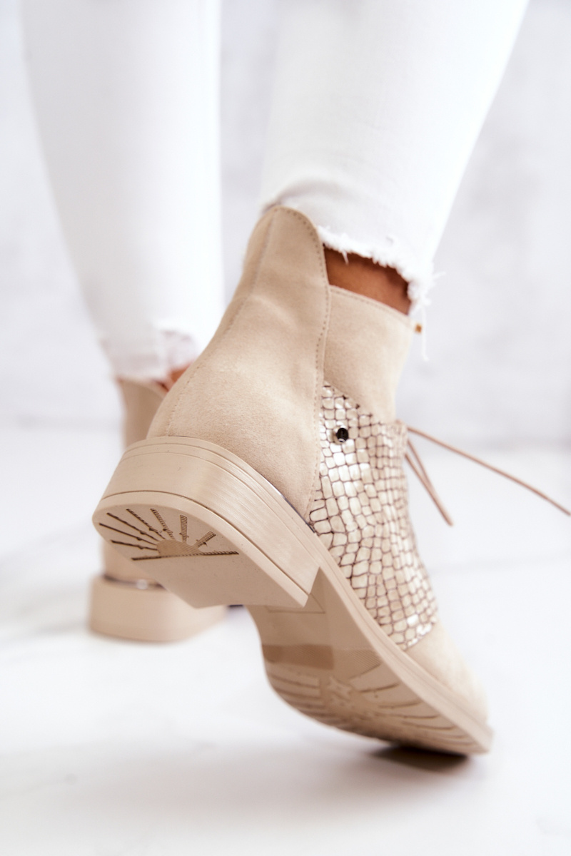 Damskie Zamszowe Botki Z Wężowym Wzorem Jasnobeżowe Lemar Sonroe
