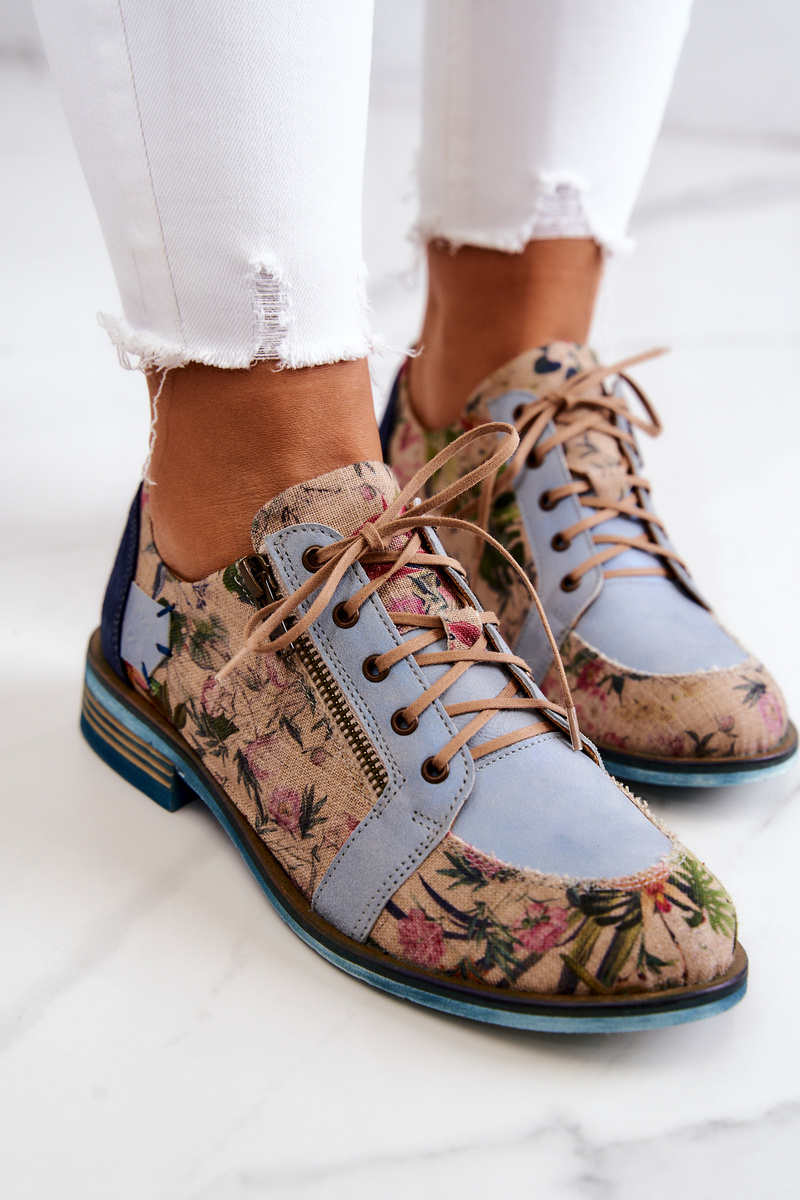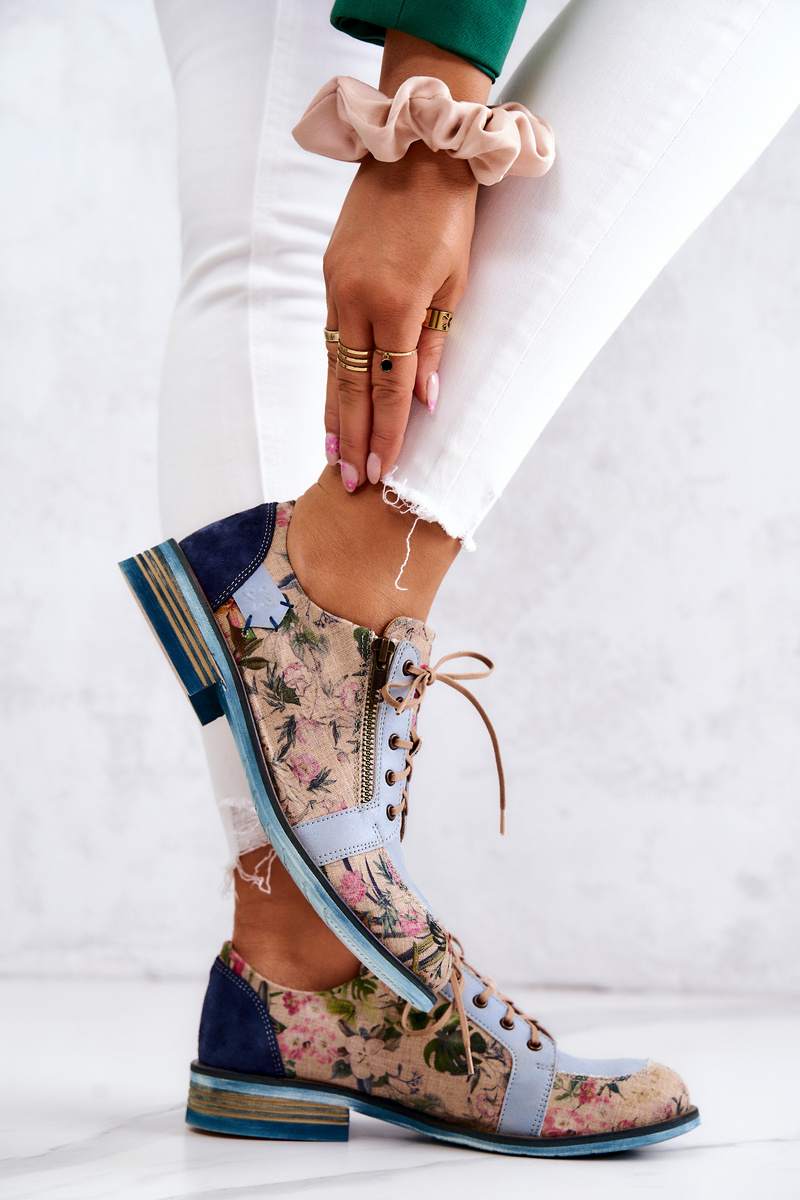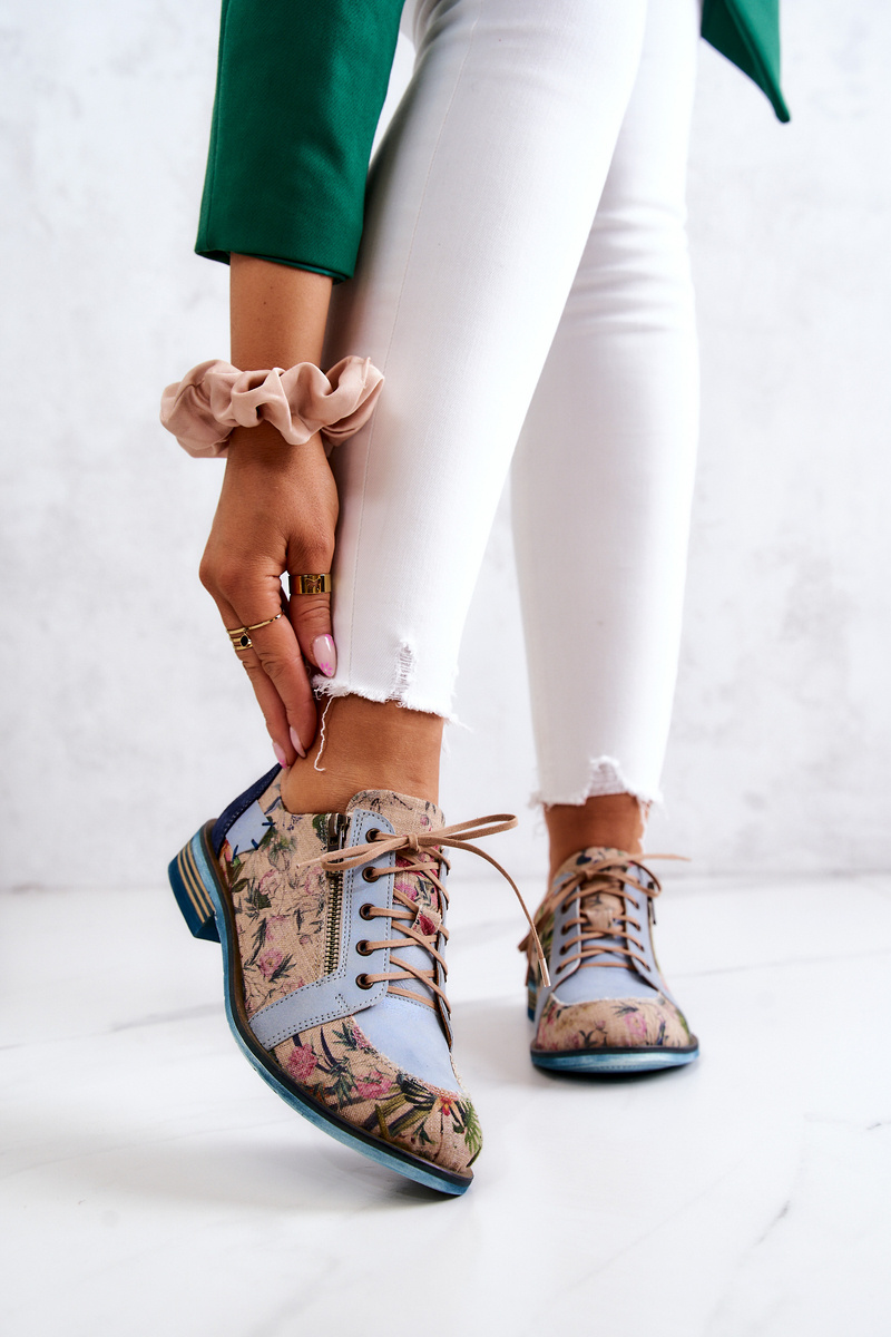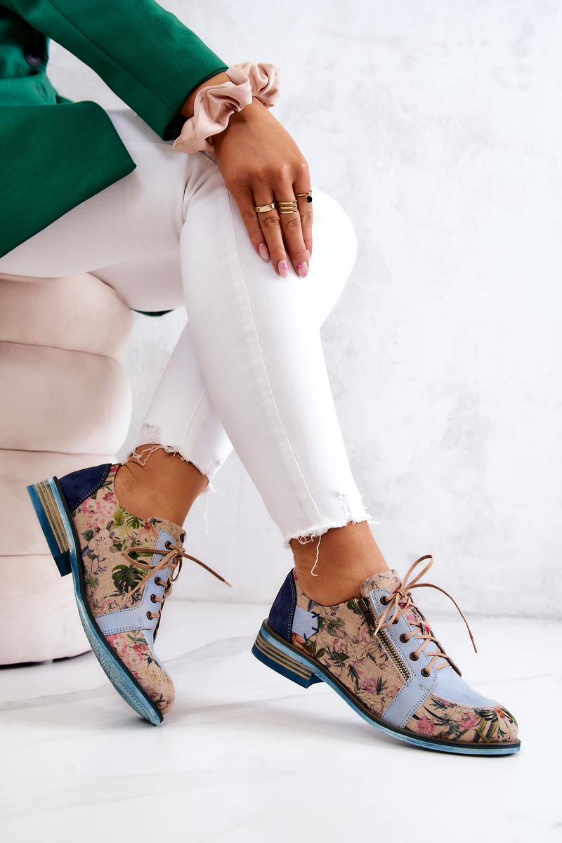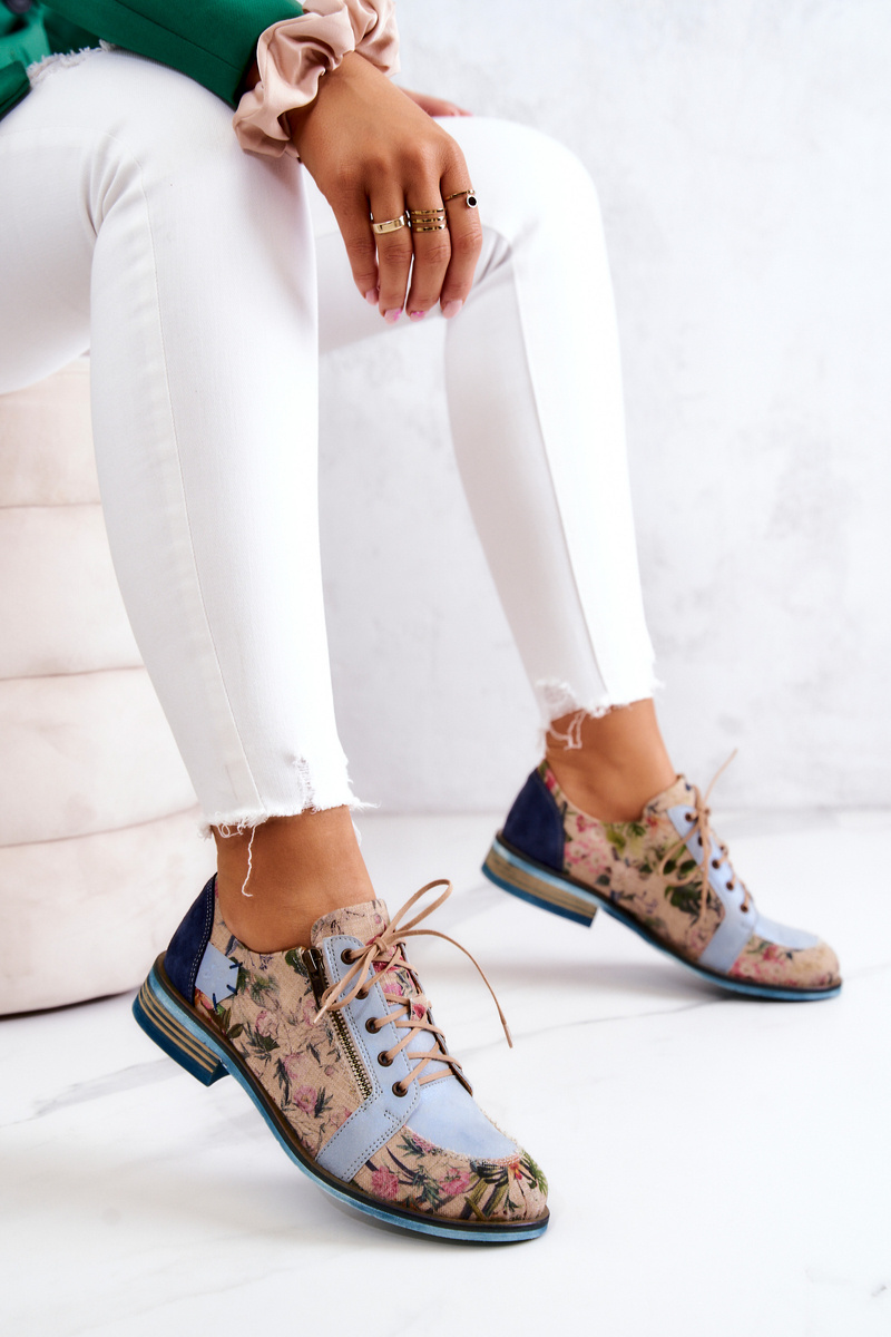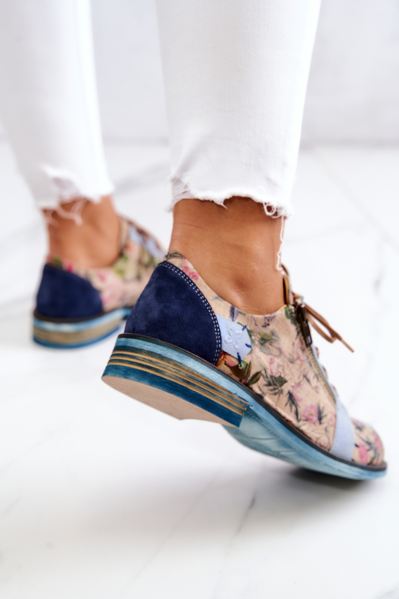 Damskie Skórzane Półbuty W Kwiaty Maciejka 5096A-34 Niebieskie