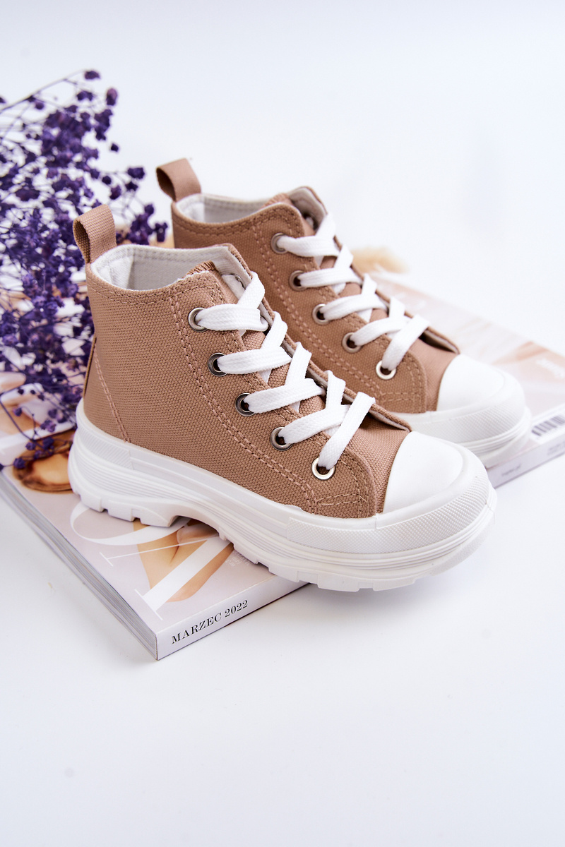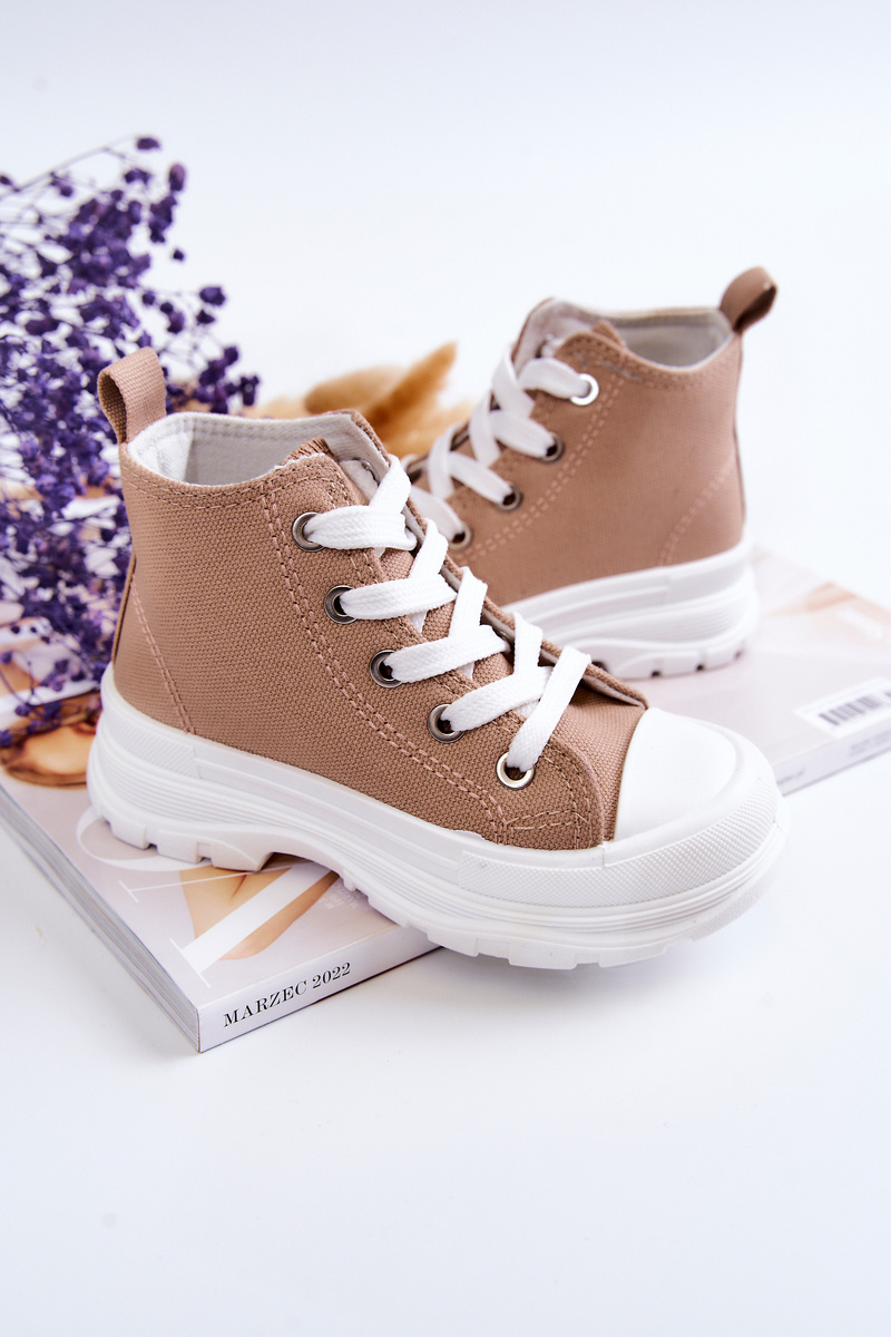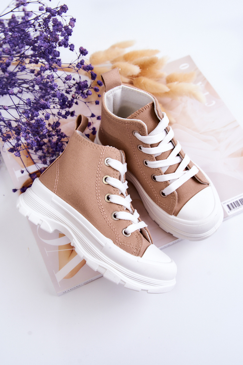 Dziecięce Wysokie Trampki Wiązane Jasnobrązowe Freeze