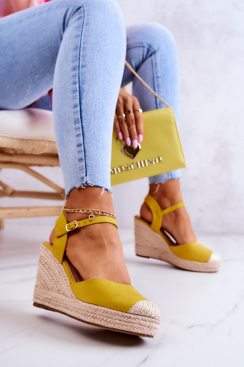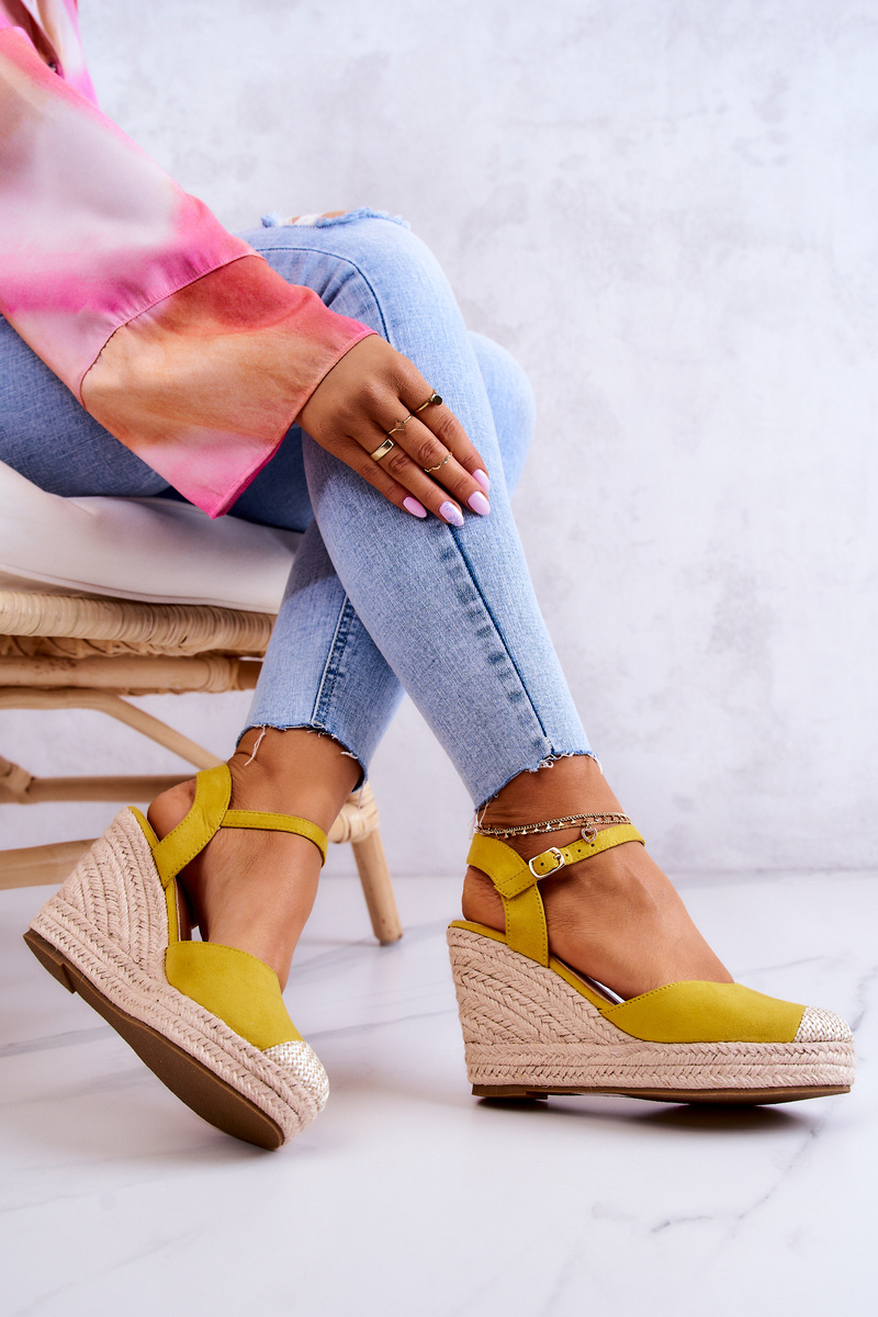 Damskie Espadryle Na Plecionej Platformie Żółte Canillo