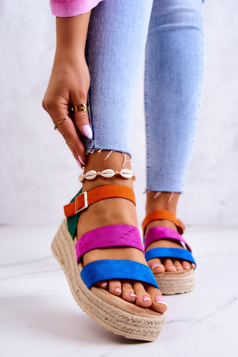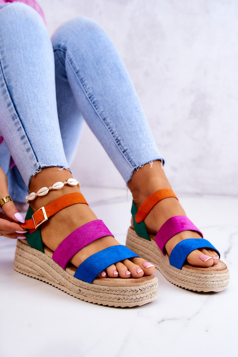 Damskie Zamszowe Sandały Na Sprzączkę Multikolor Corestra