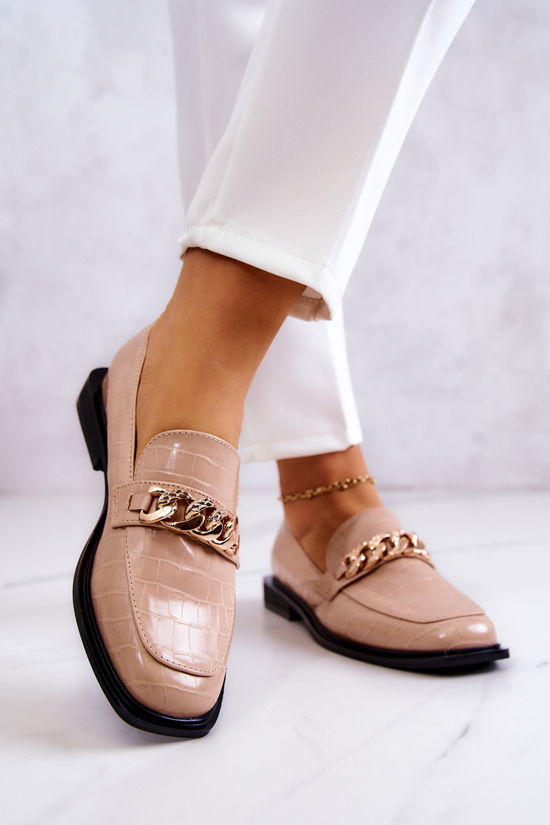 Skórzane Mokasyny Loafery Z Łańcuchem Beżowe Killen