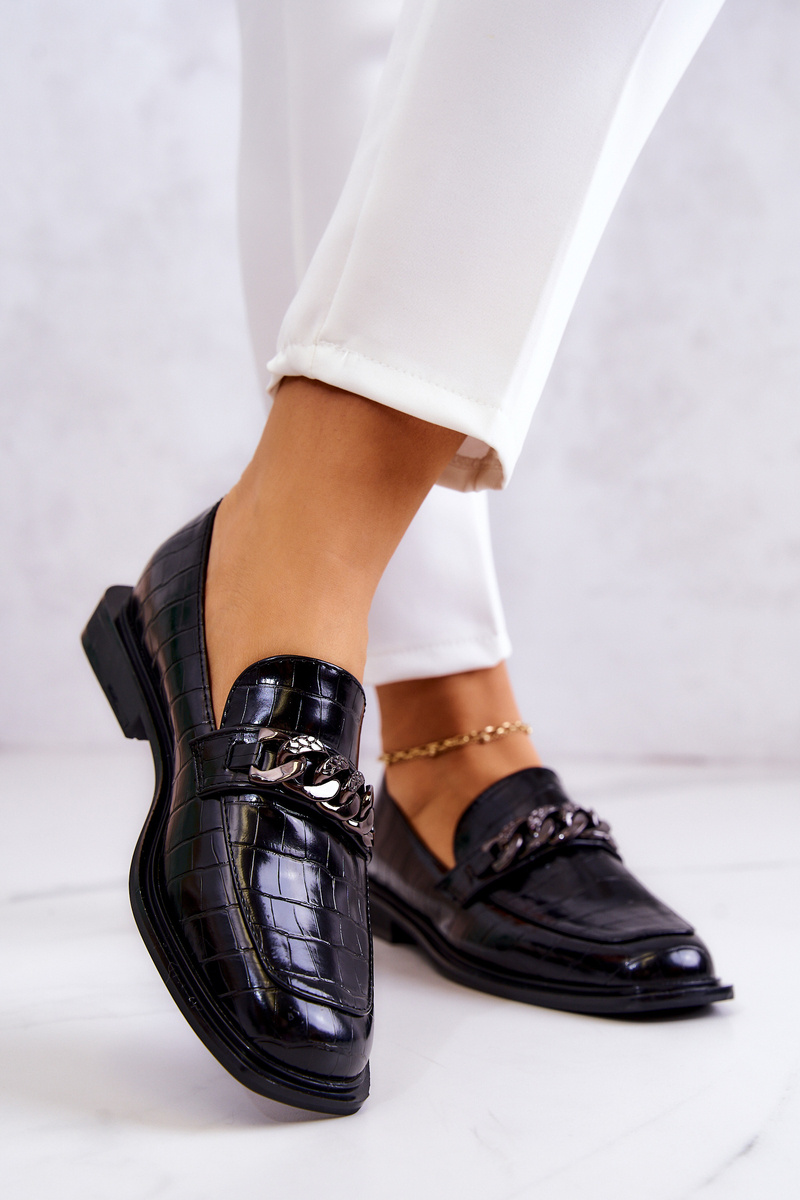 Skórzane Mokasyny Loafery Z Łańcuchem Czarne Killen