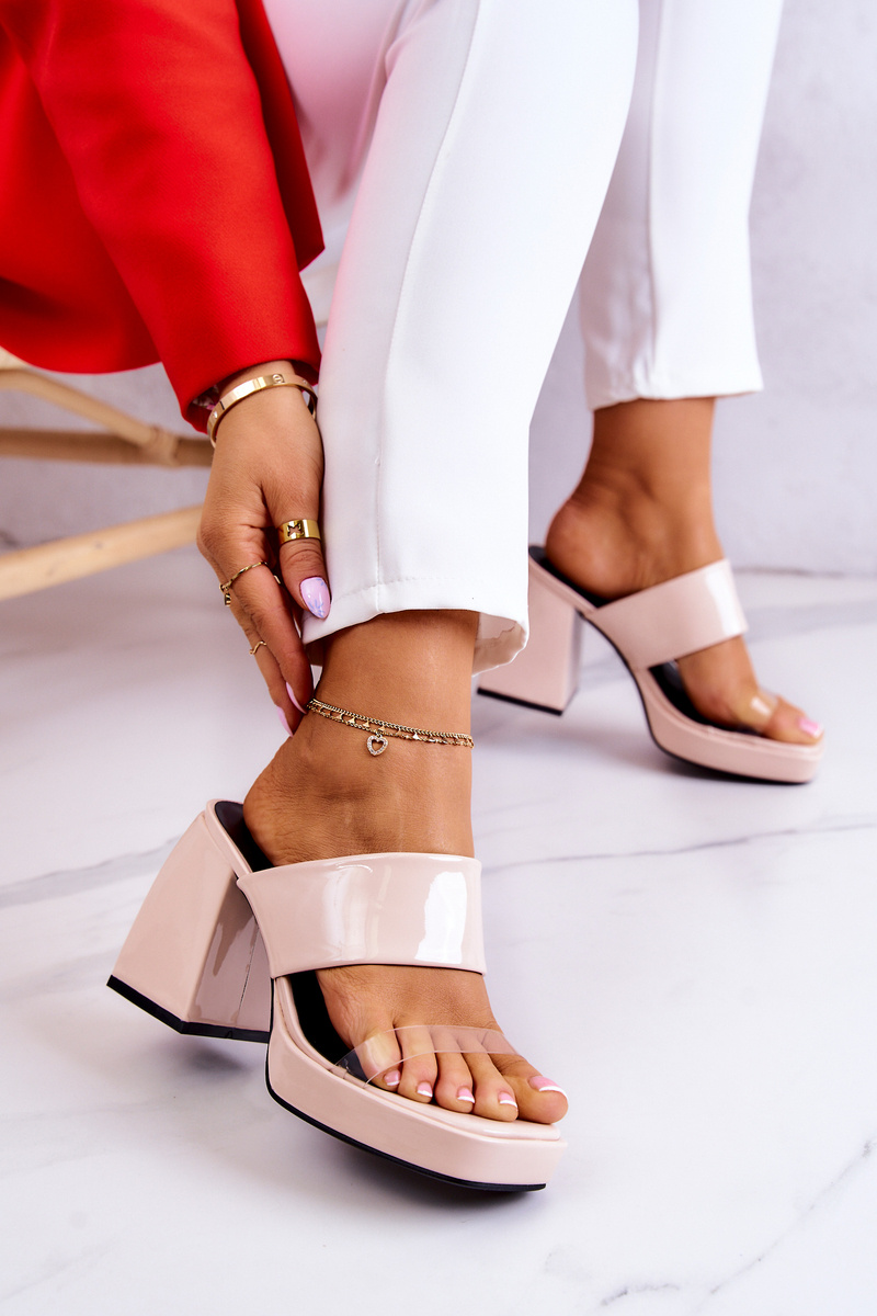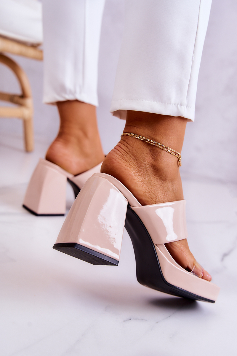 Lakierowane Klapki Na Słupku Jasnobeżowe Seattle