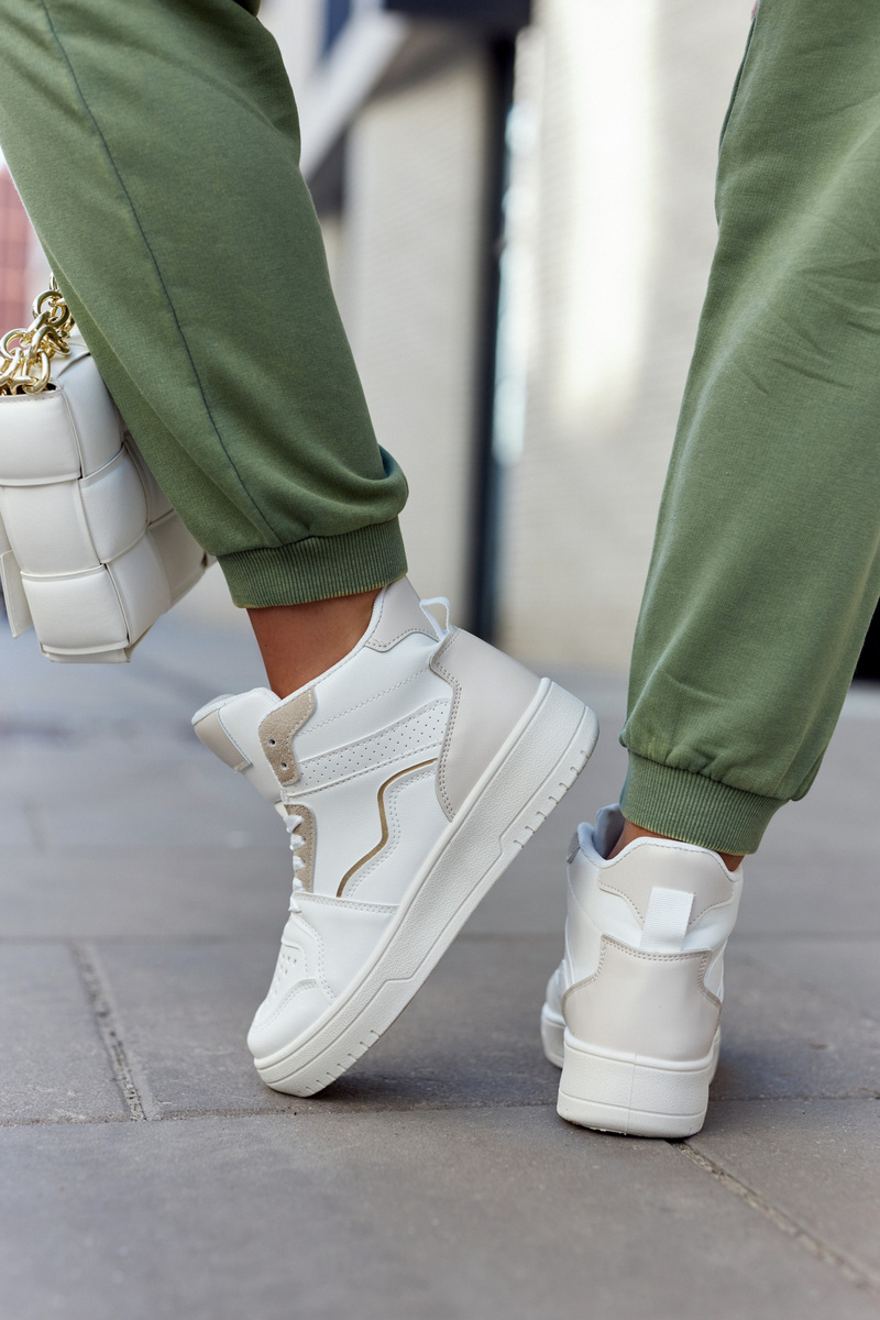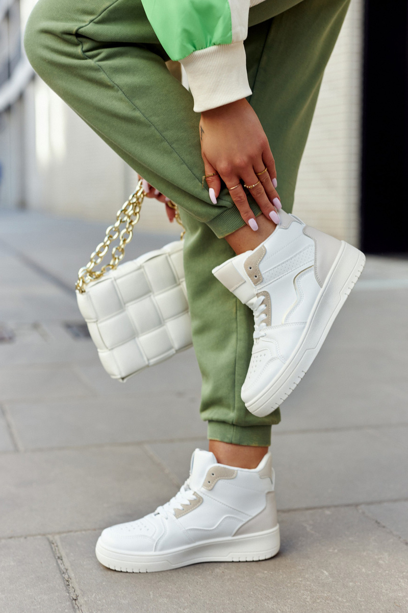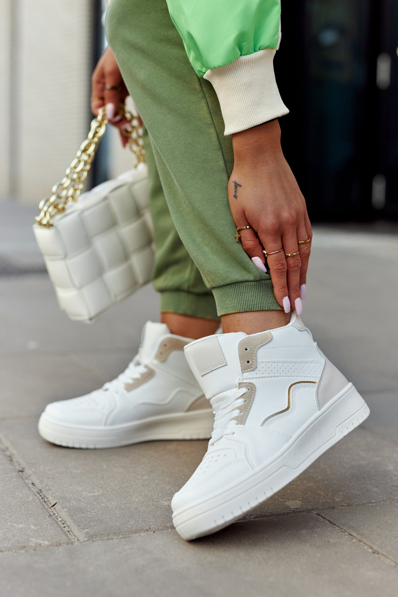Wysokie Damskie Buty Sportowe Biało-Beżowe Megithoe
