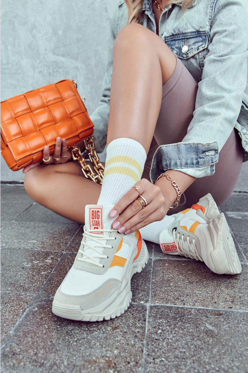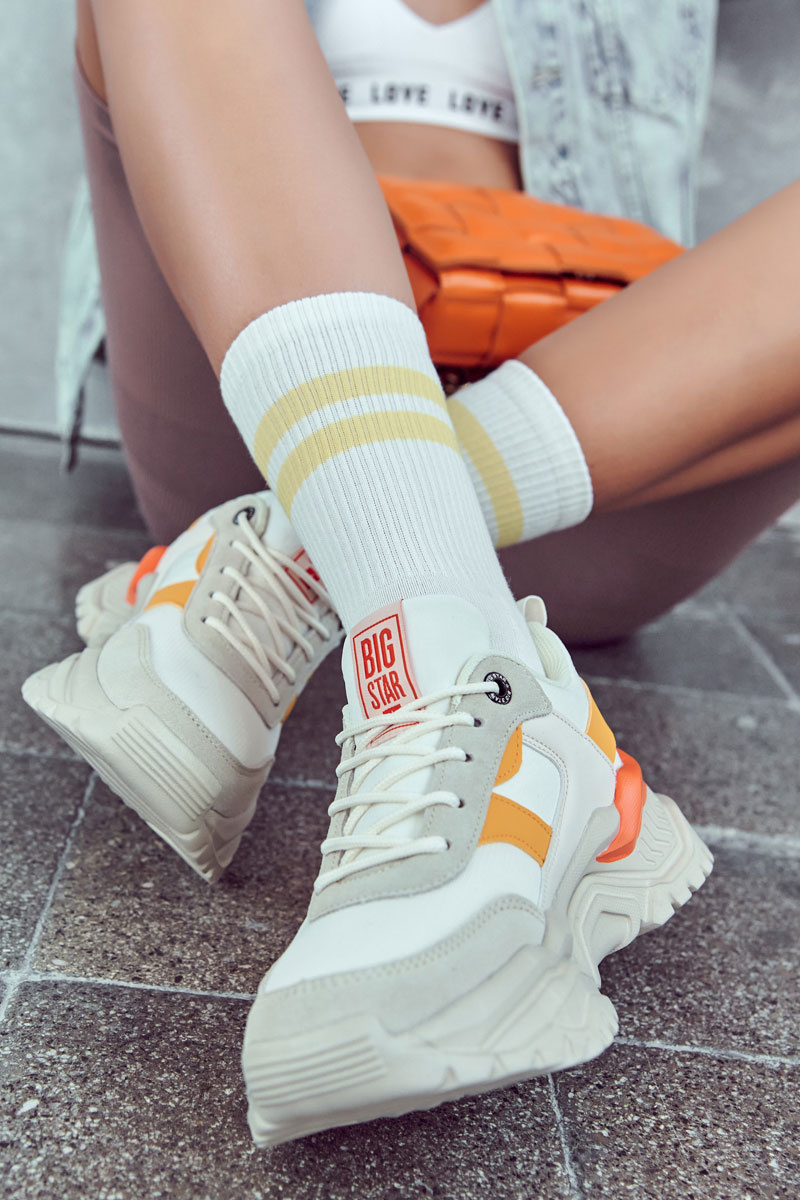 Damskie Buty Sportowe Big Star JJ274A411 Biało-Beżowe
