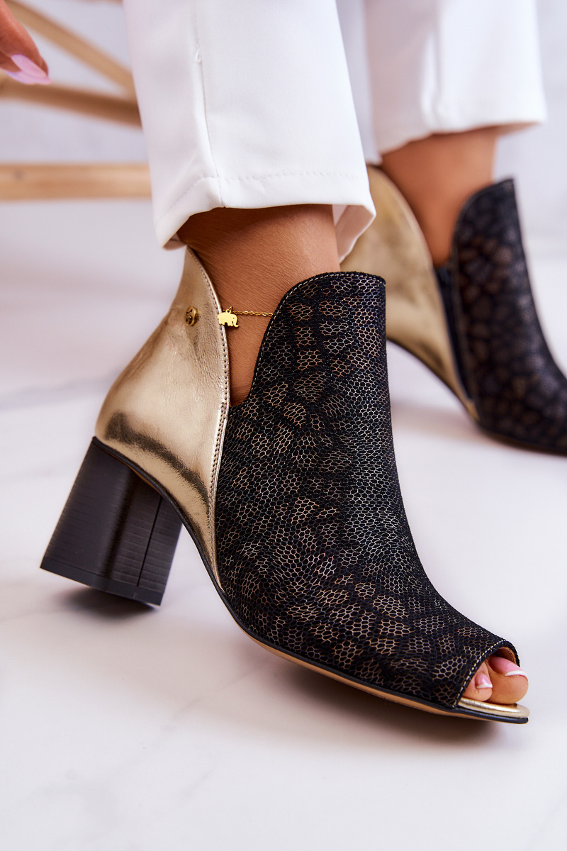 Skórzane Botki Na Słupku Maciejka 05507-01 Czarno-Złote