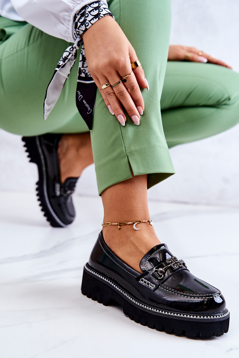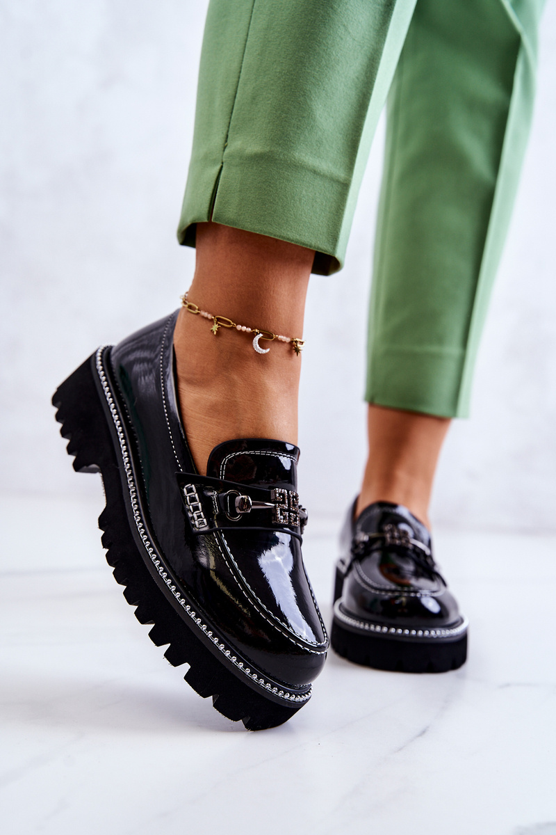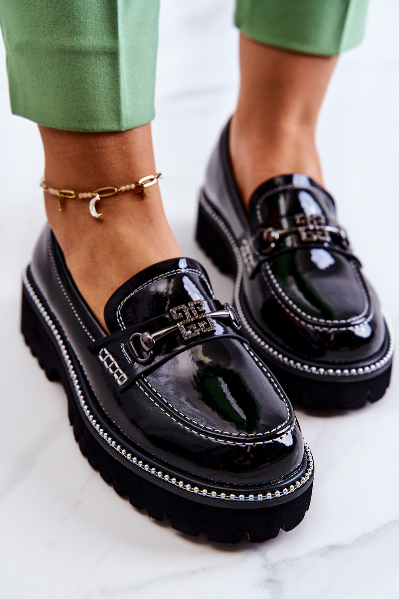 Lakierowane Skórzane Półbuty Z Ozdobą Czarne Adison