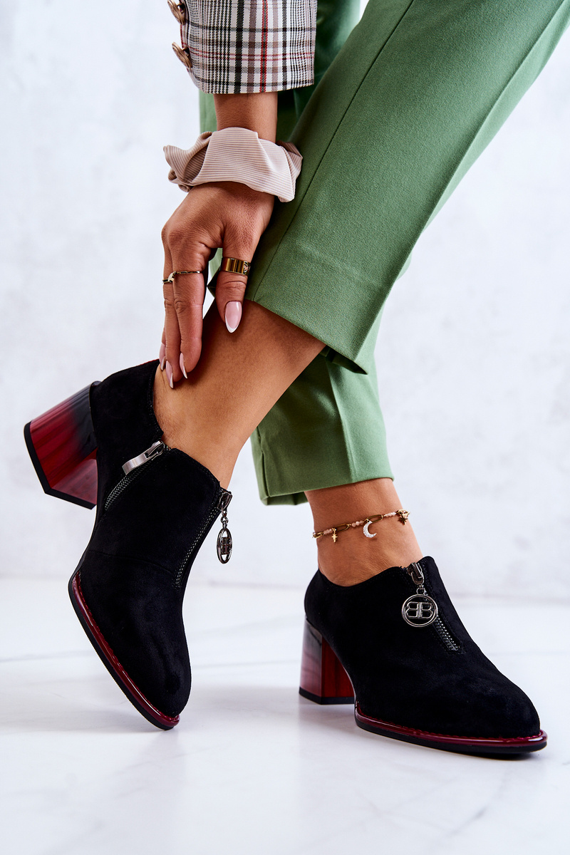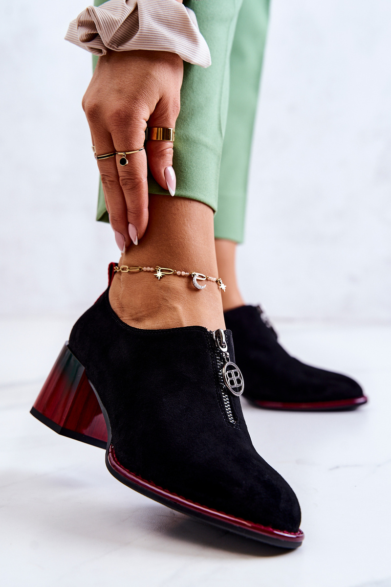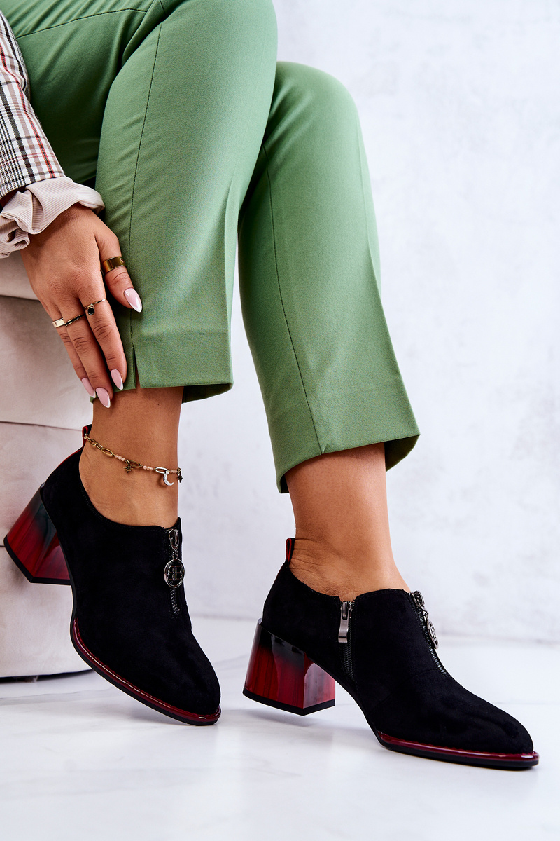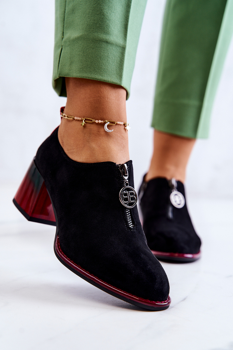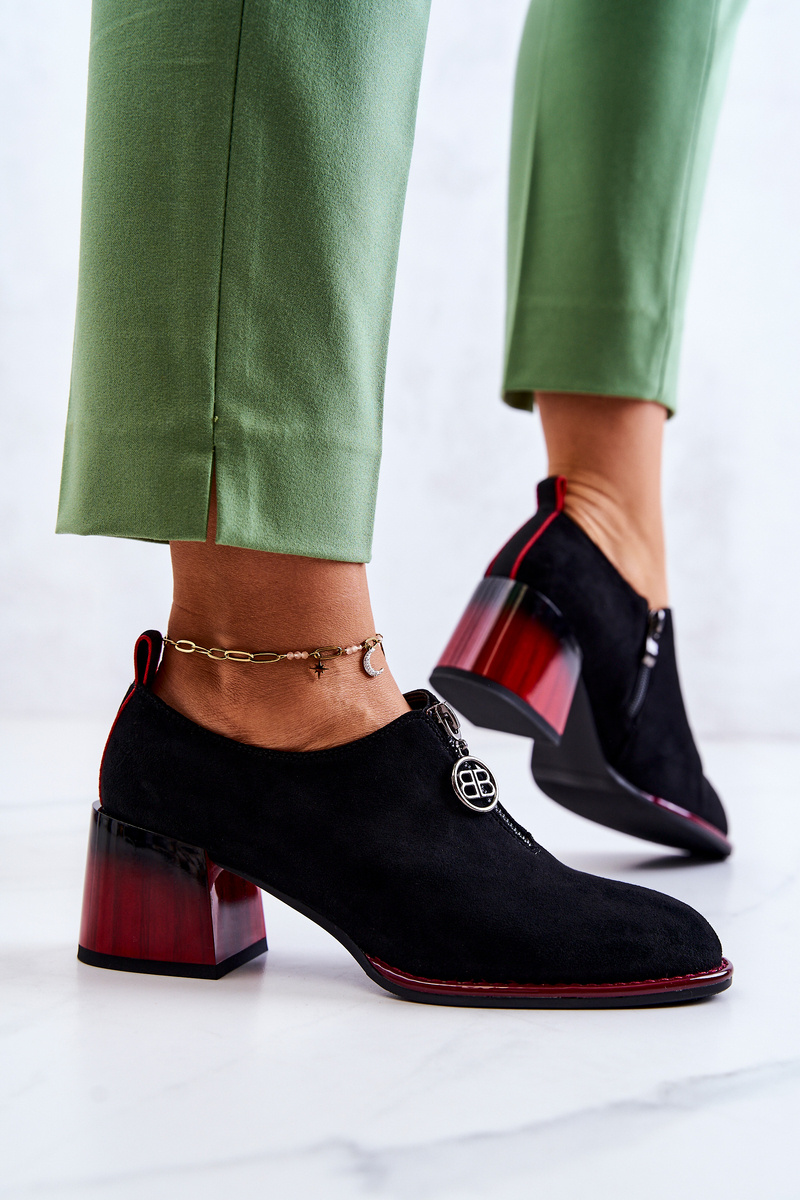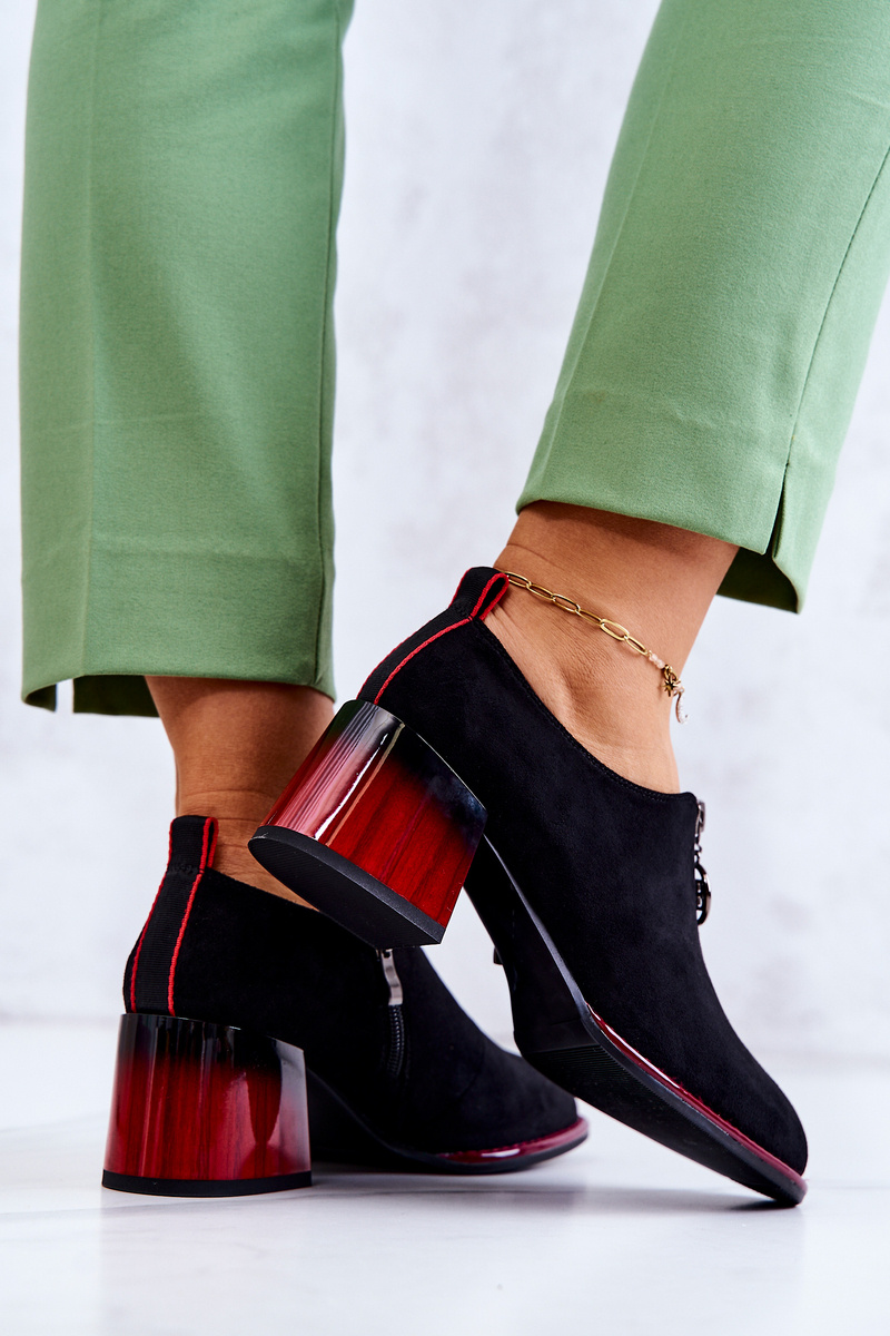 Zamszowe Modne Półbuty Na Słupku Czarno-Czerwone Lorena