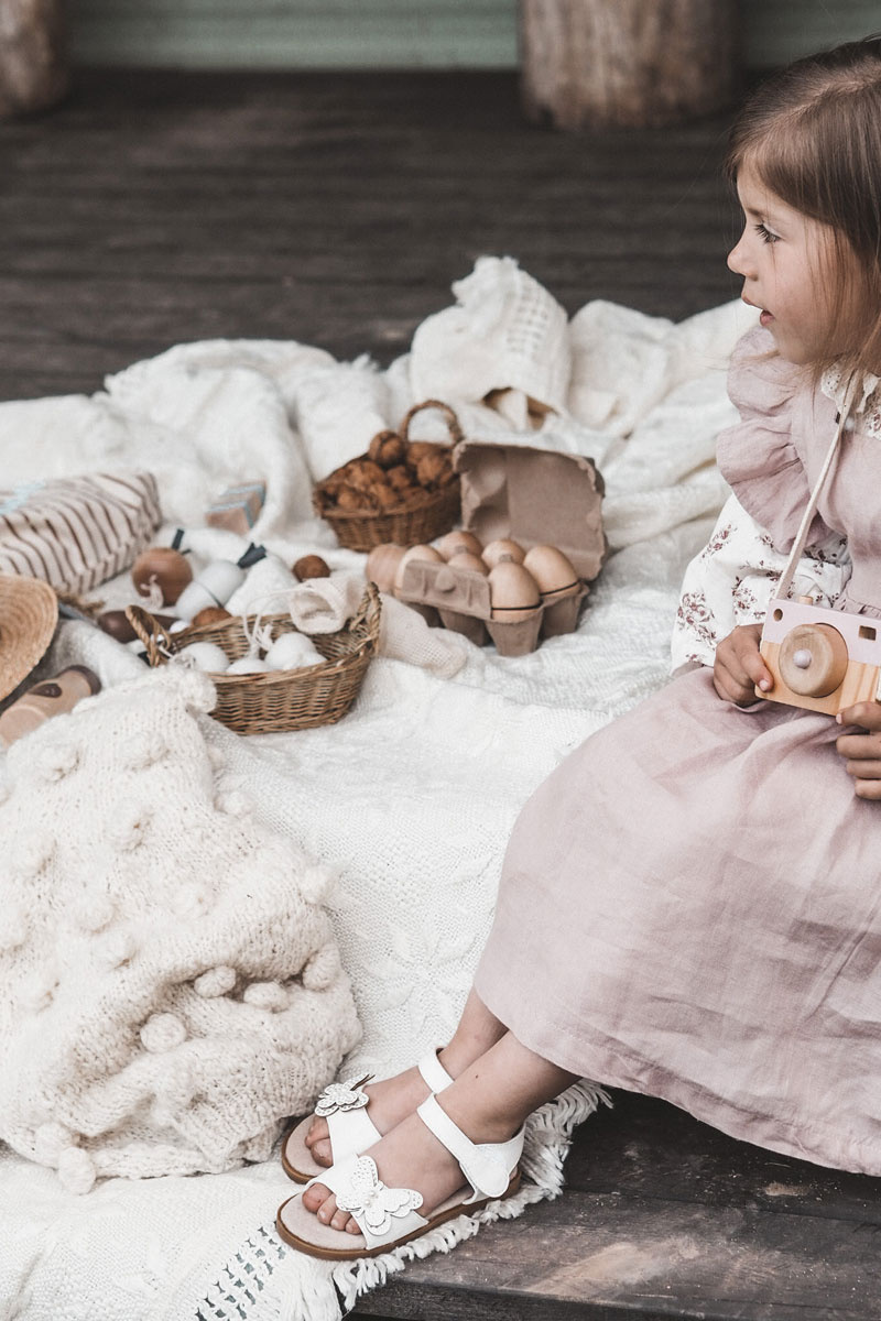 Dziecięce Skórzane Sandały Motylki Białe Rolly