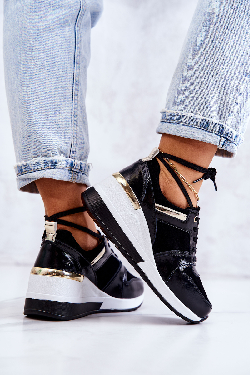 Skórzane Buty Sportowe Na Koturnie Czarno-Białe Rayana