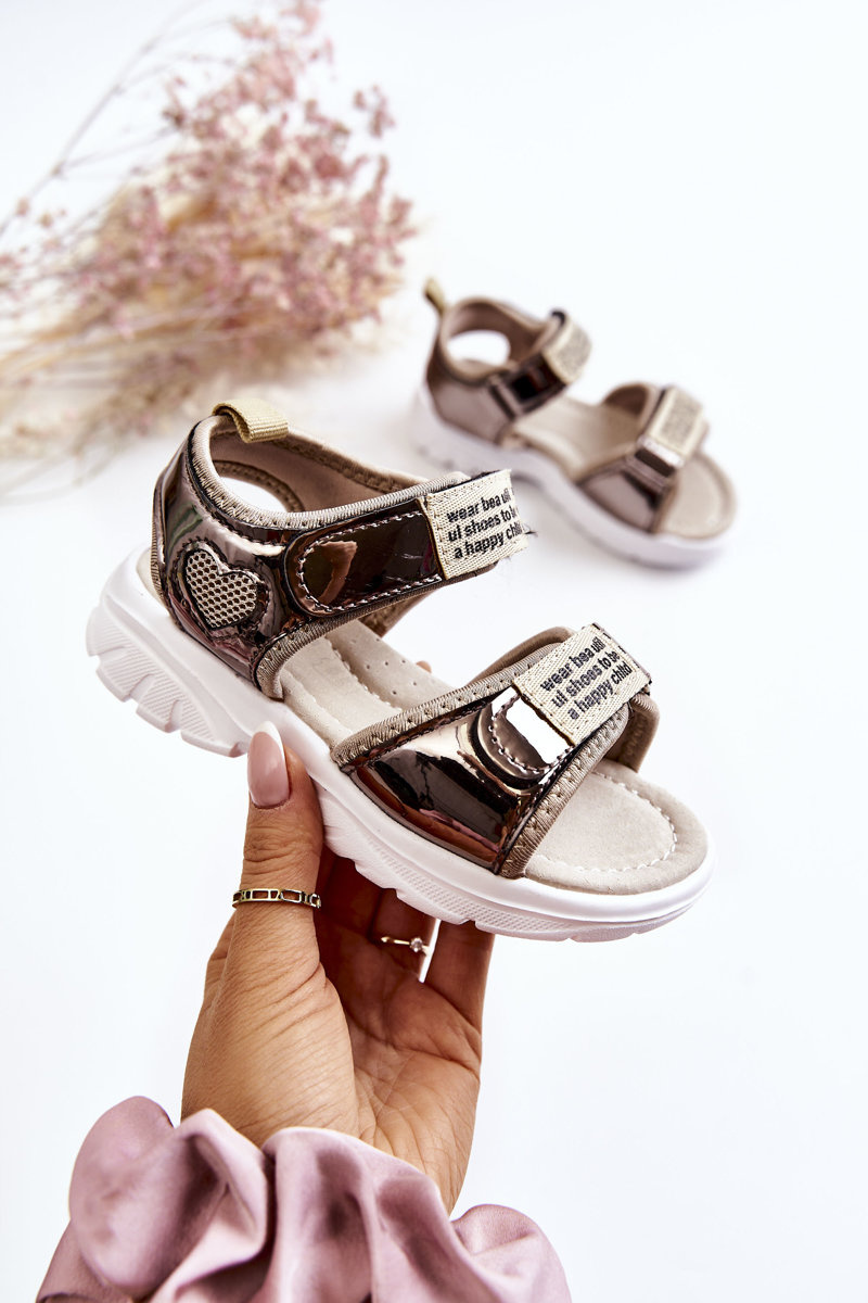 Skórzane Dziecięce Sandały Na Rzepy Ciemnozłote Amoss