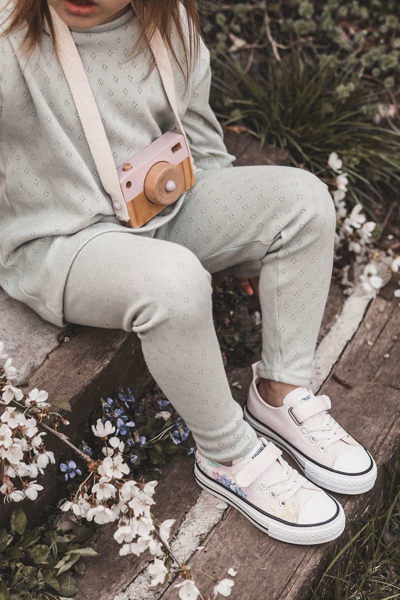 Klasyczne trampki dziecięce zapinane na rzep. Wykonane z materiału tekstylnego z gumowym wzmocnieniem na nosku. Piękny print oraz przyszyte motylki na boku cholewki sprawiają, że te buciki wyglądają naprawdę cudownie. Dodatkowo buty posiadają gumki imitujące sznurówki. Miękka wkładka wykonana z tkaniny jest wyciągana i profilowana. Podeszwa wykonana z gumowego tworzywa, antypoślizgowa. Z tyłu obuwia znajduje się pętelka ułatwiająca zakładanie i ściąganie obuwia. Trampki mają delikatnie usztywniany zapiętek. Przy wyborze rozmiaru prosimy sugerować się tabelą rozmiarów.