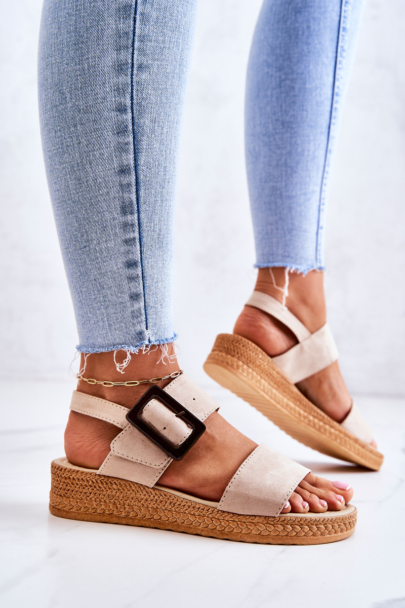 Damskie Zamszowe Sandały Big Star JJ276032 Beżowe